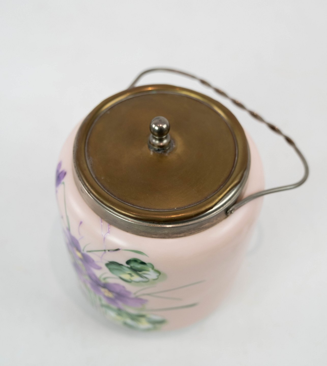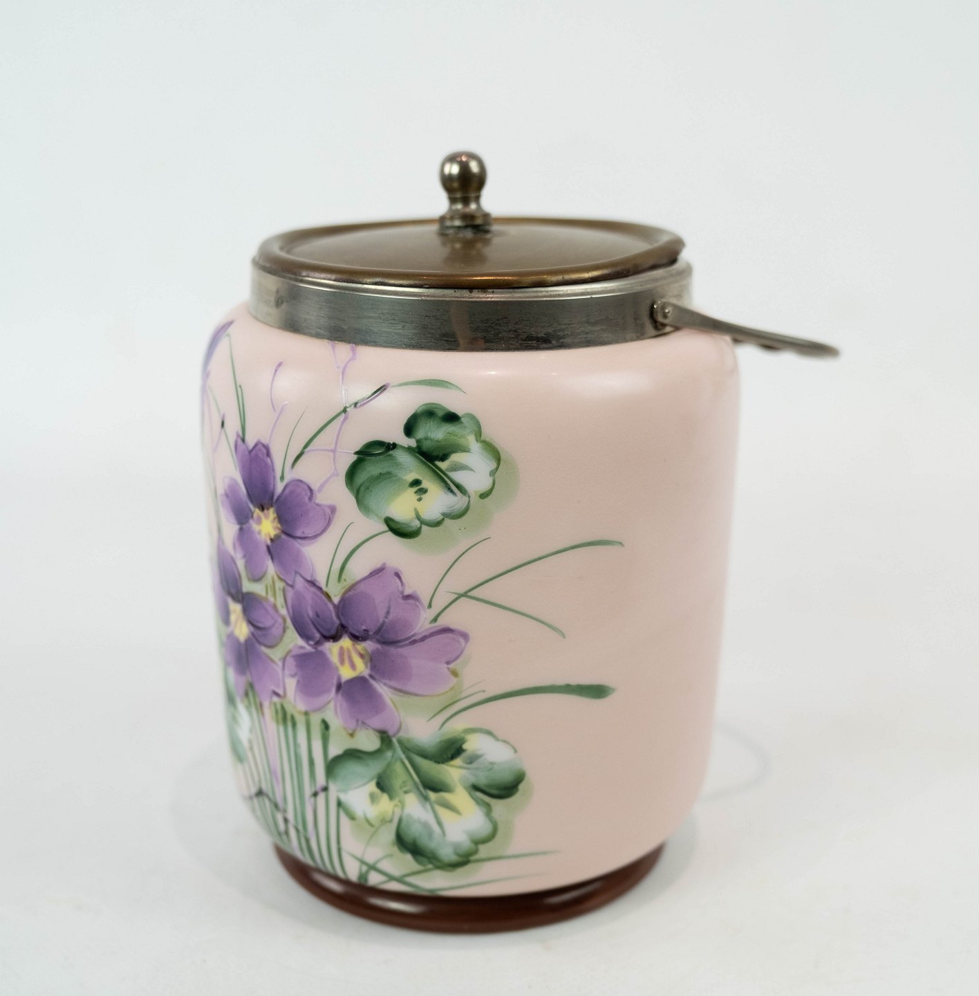 SoldEnglish jar for bisquits of fajance decorated with colorful flowers, in great condition.
