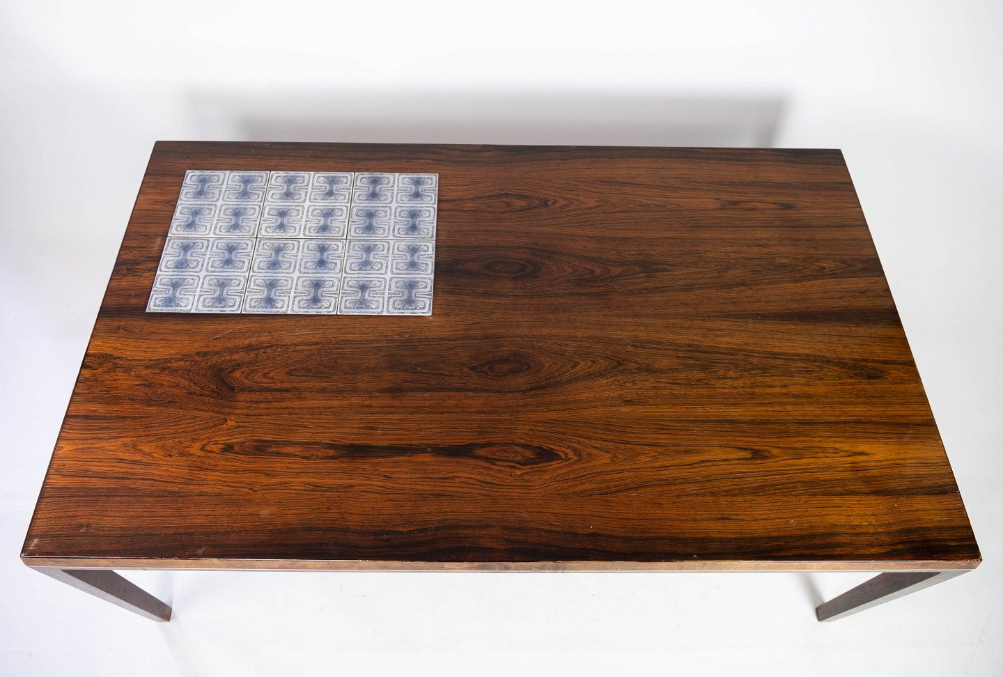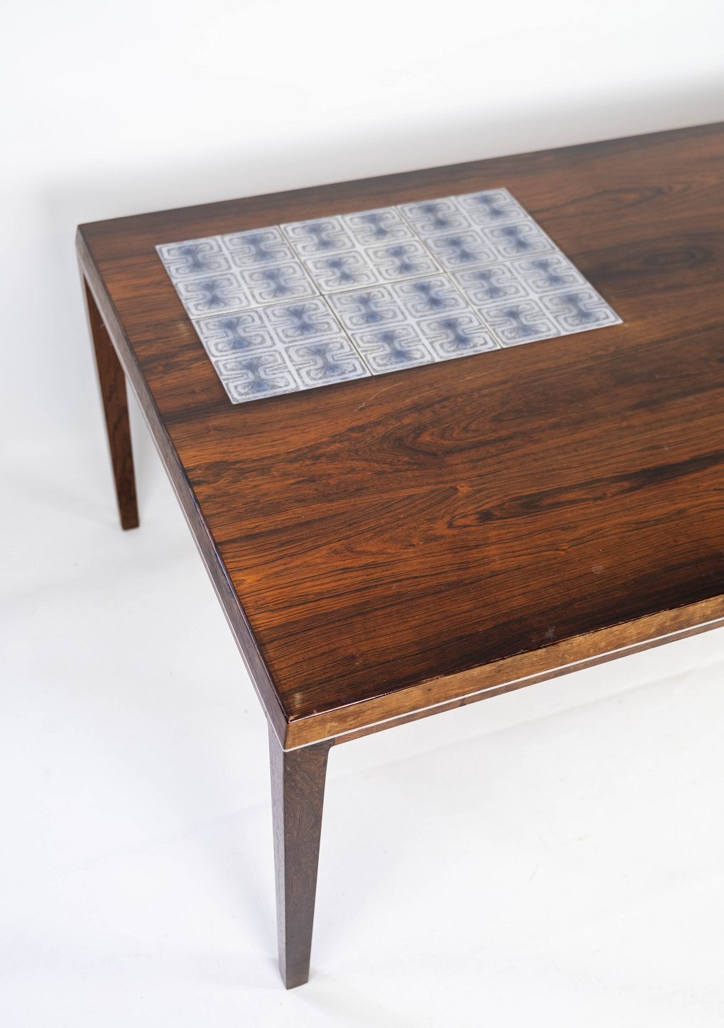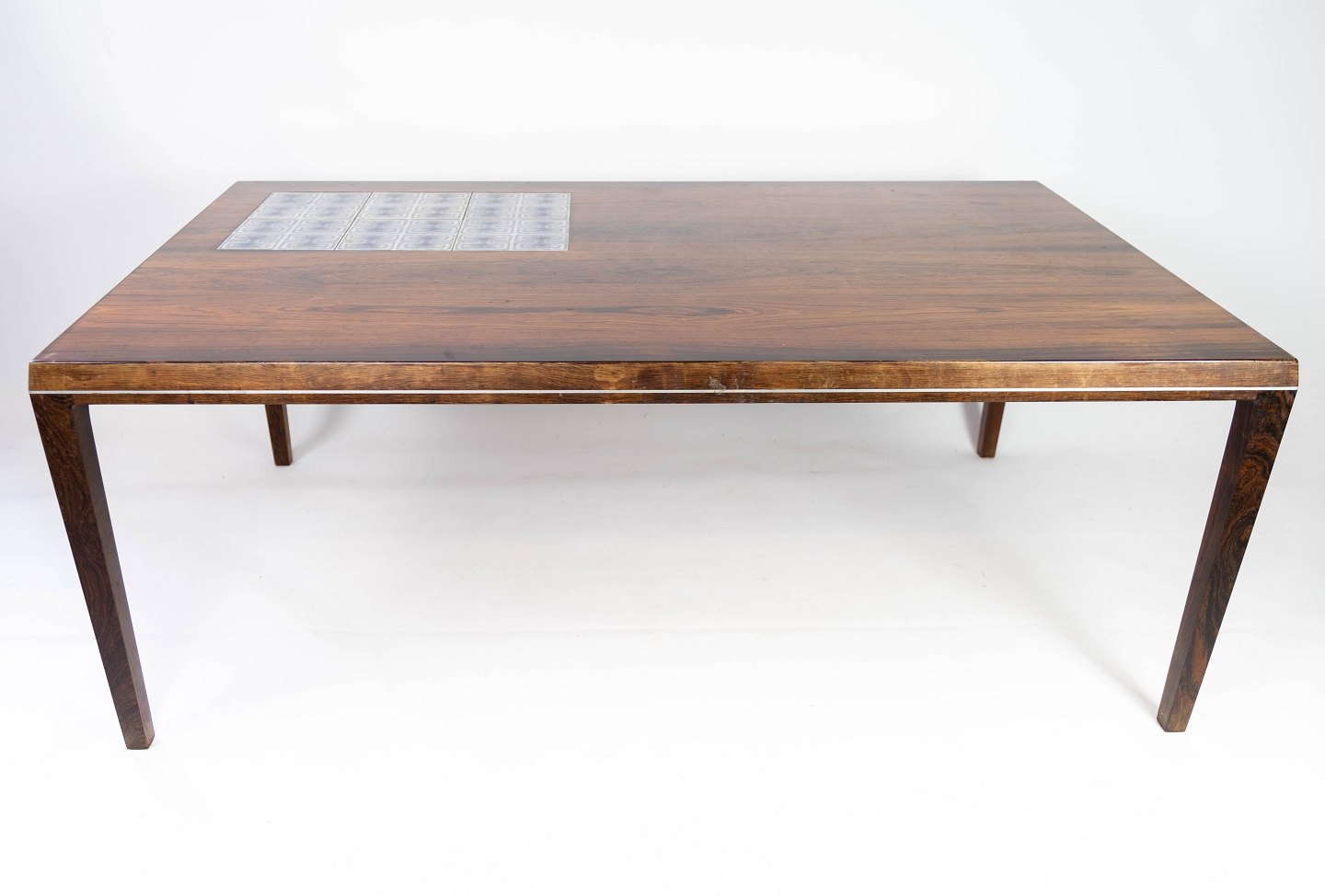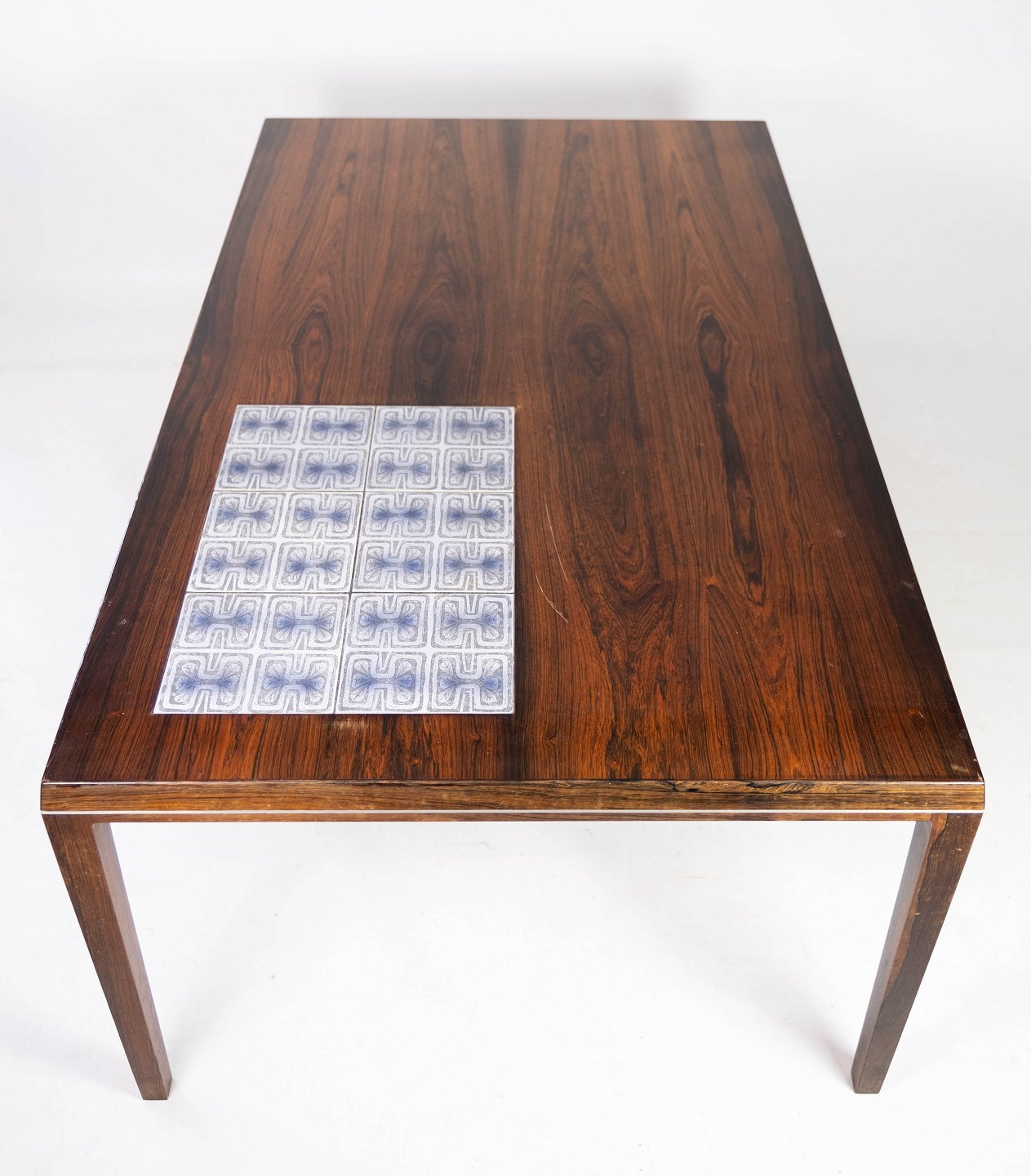 Coffee table in rosewood with tiles, designed by Johannes Andersen and manufactured by Silkeborg Furniture from the 1960s.