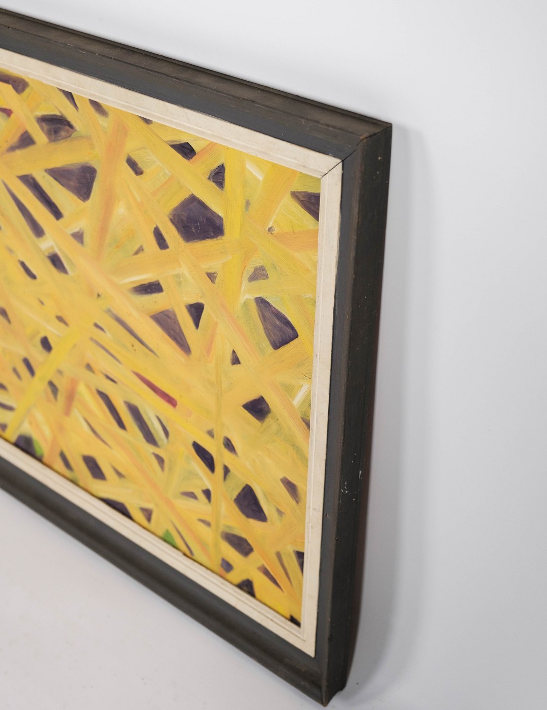 Painting in yellow colors with dark wooden frame from the 1970s.