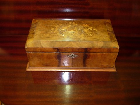 Rejseskrin i mahogni med indlagt træ fra 1890.
