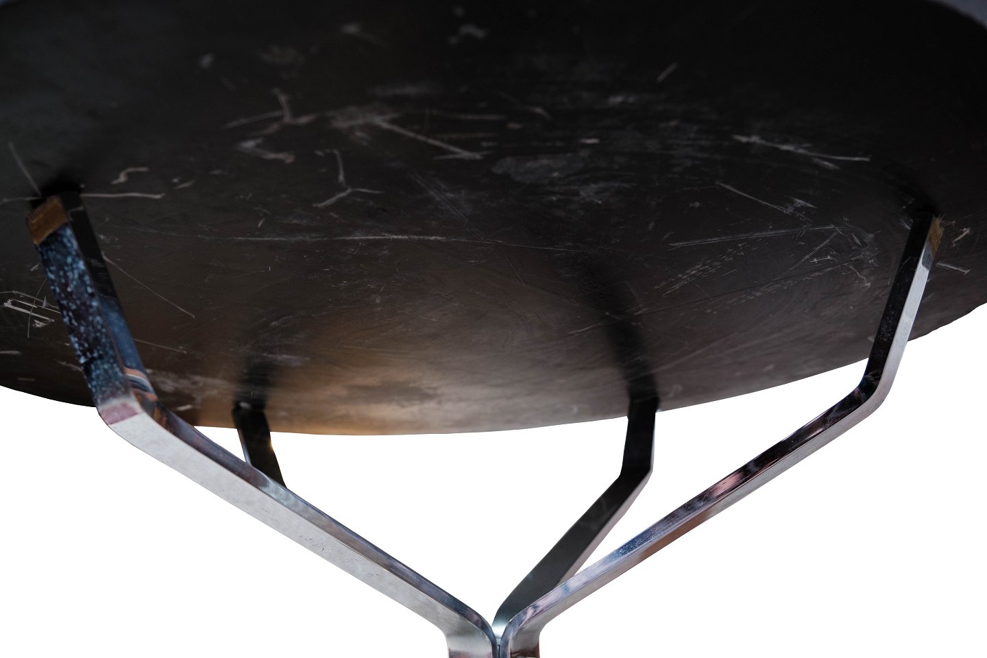 Round coffee table with black slate plate and designed by Sigurd Ressell Falcon.
