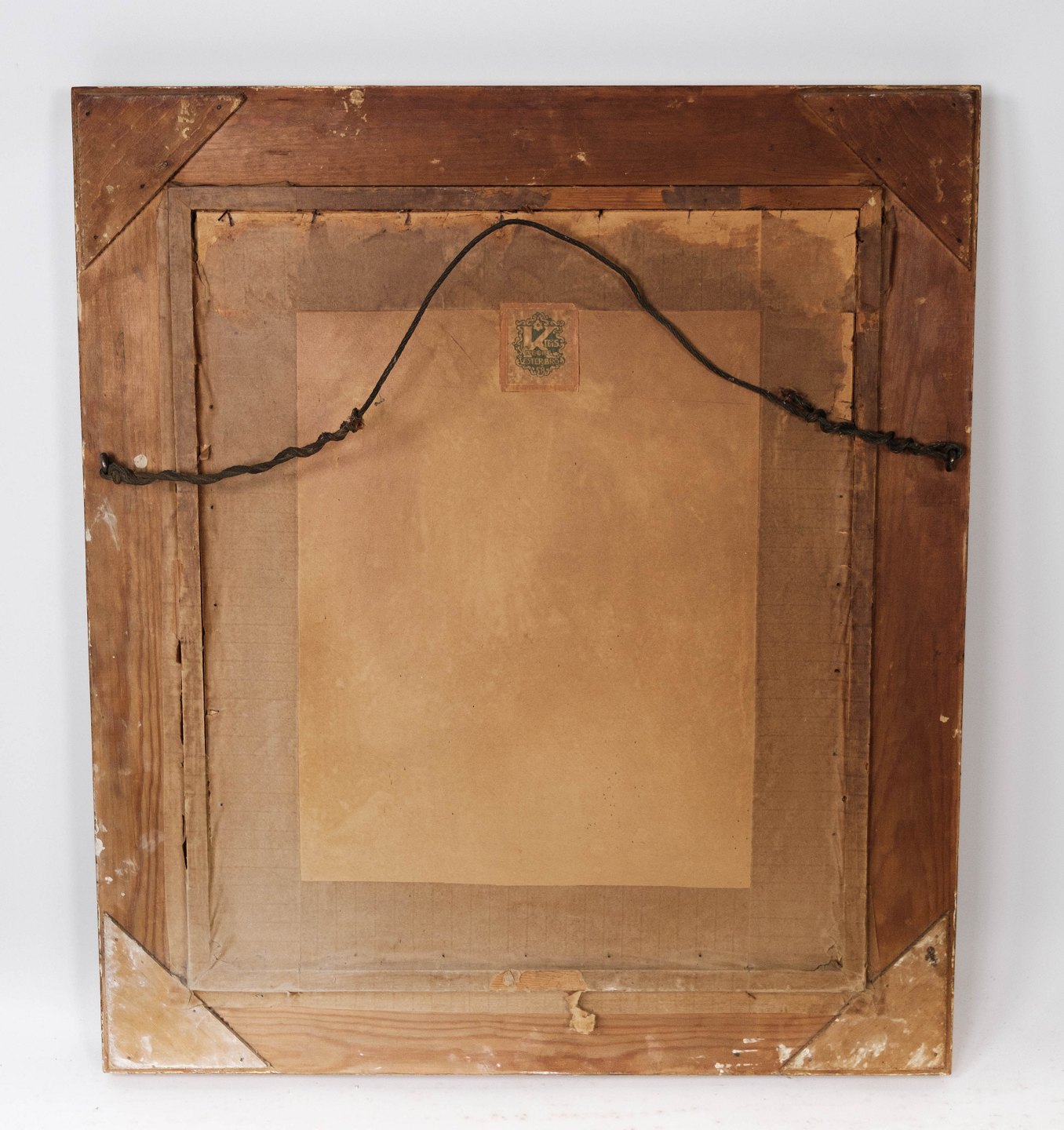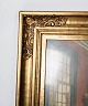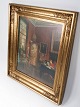 SolgtInteriør maleri på lærred med flot forgyldt ramme, fra omkring 1920.
