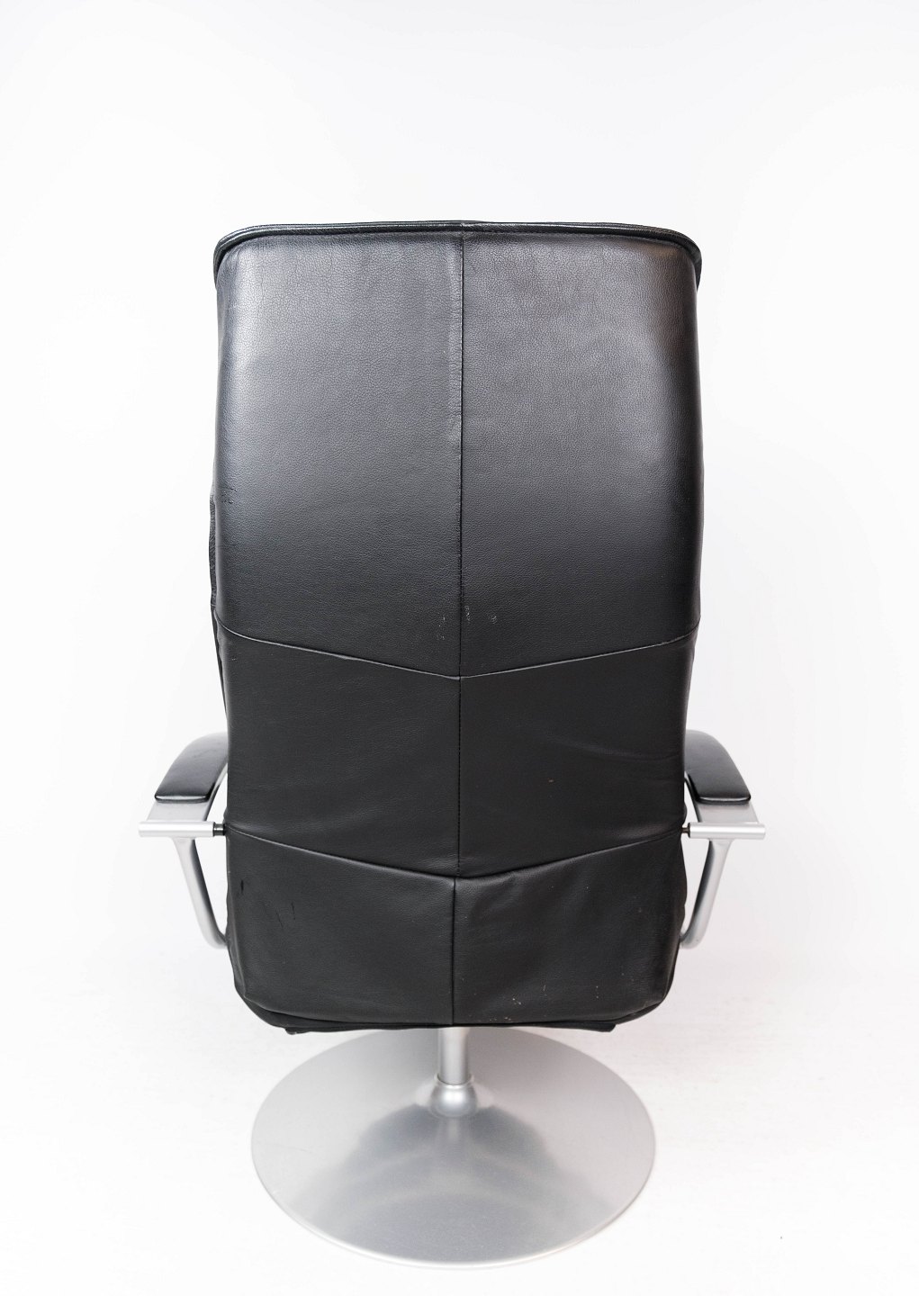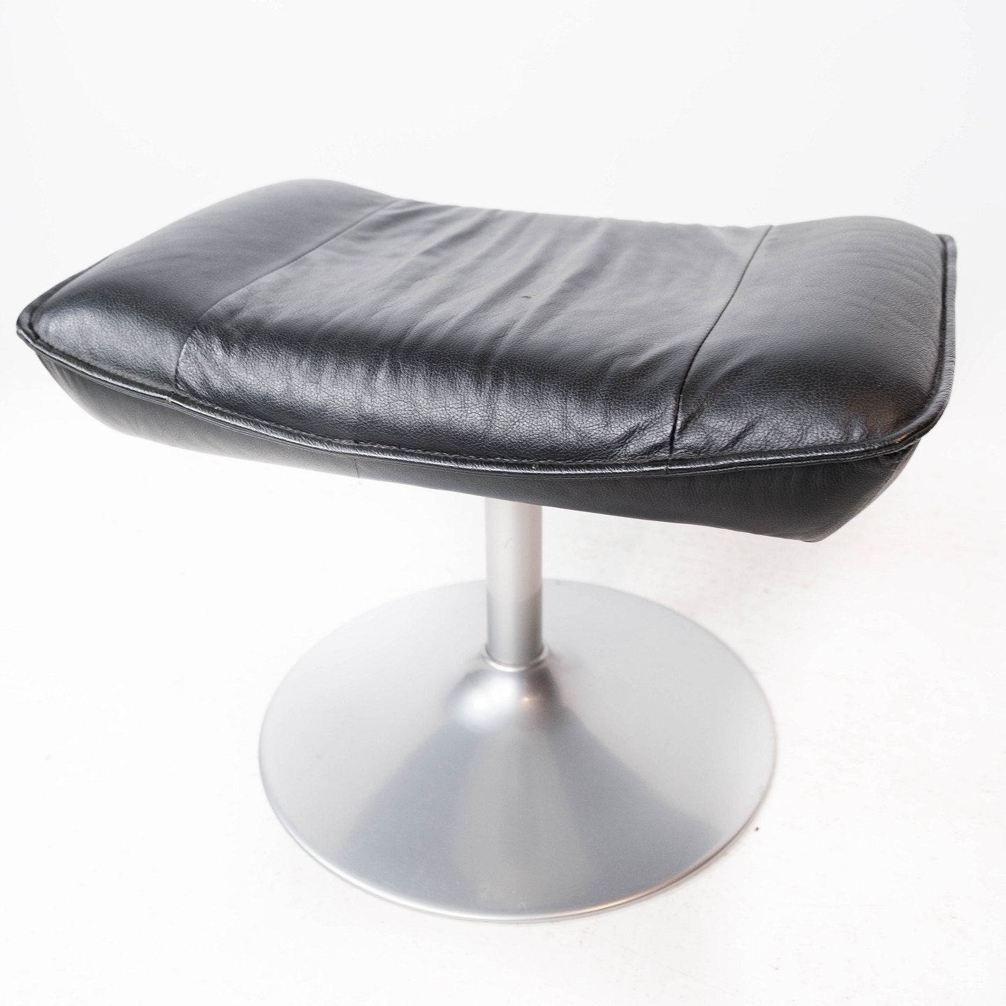 Easy chair with stool upholstered with black leather and frame of metal, of Danish design from the 1970s.