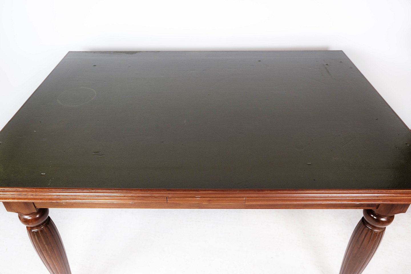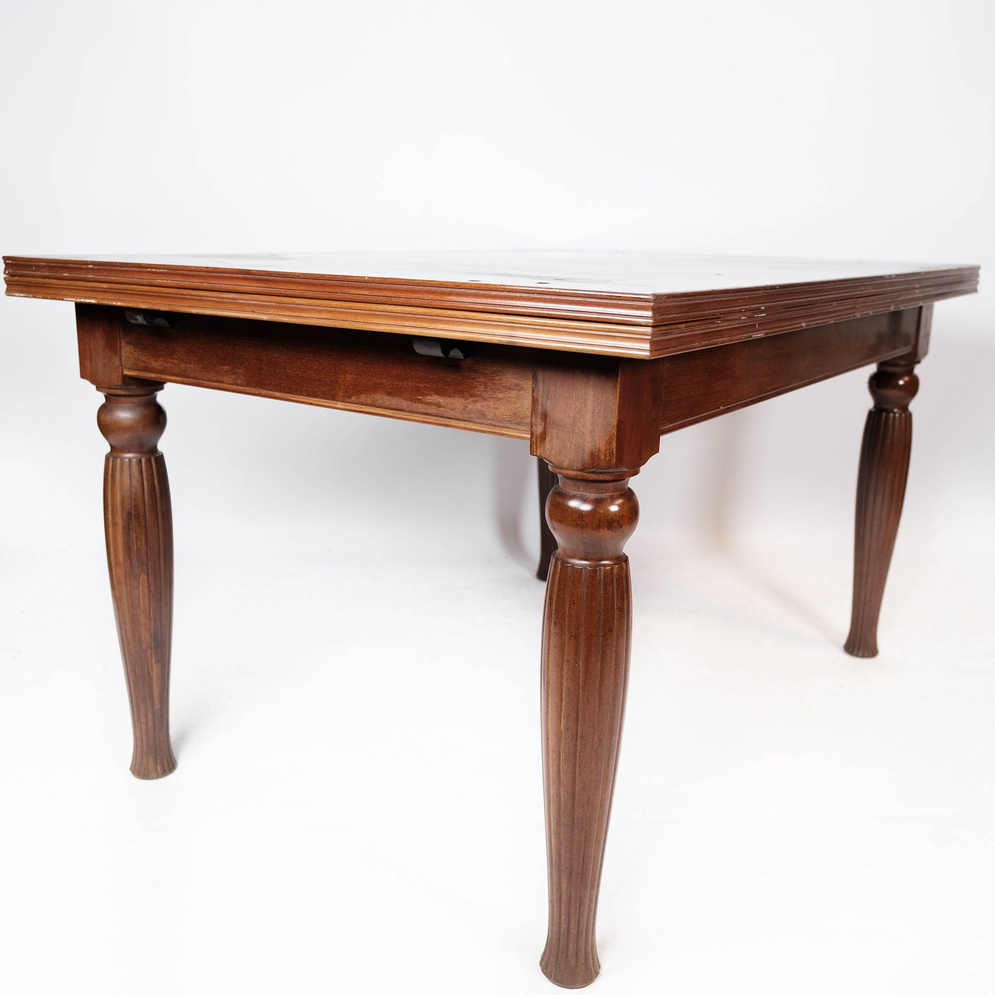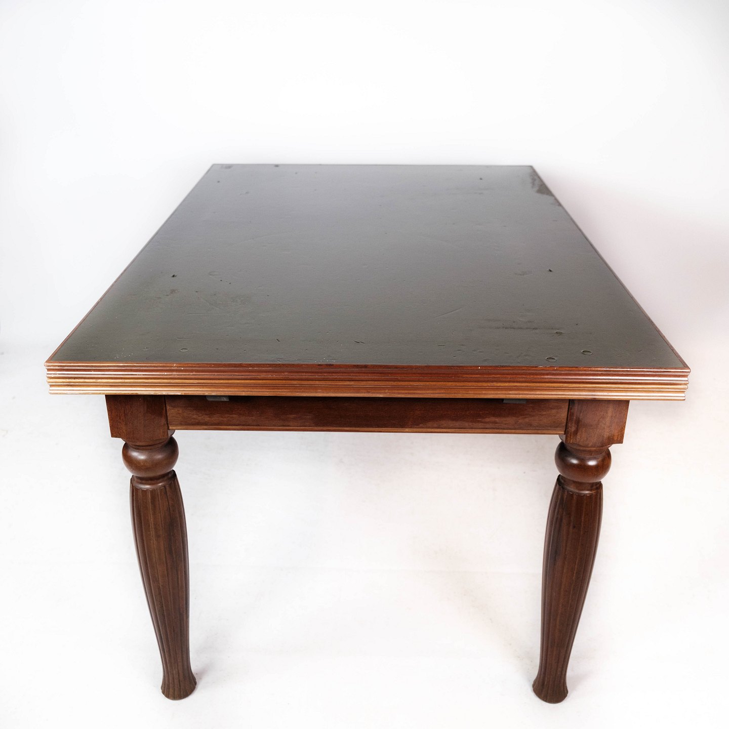SoldDining table in mahogany with dark top plate and extensions, in great antique condition from around 1930.