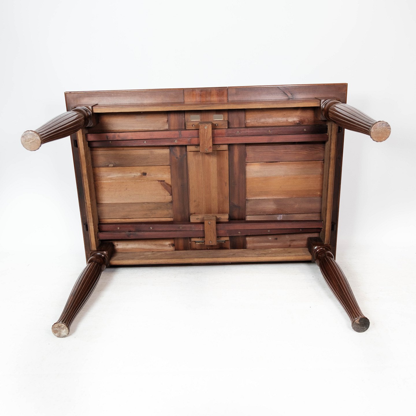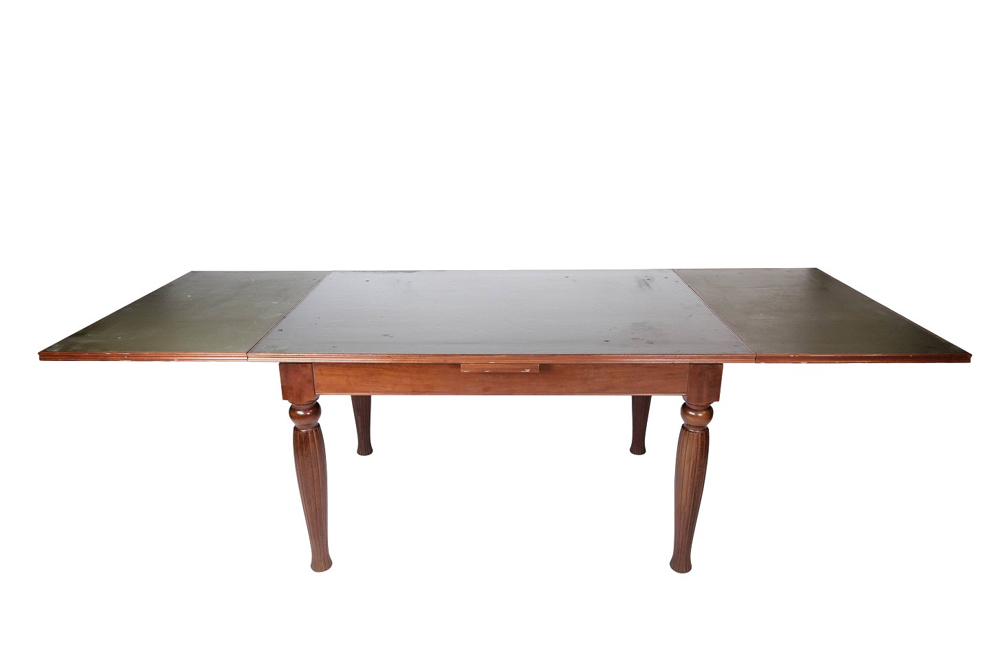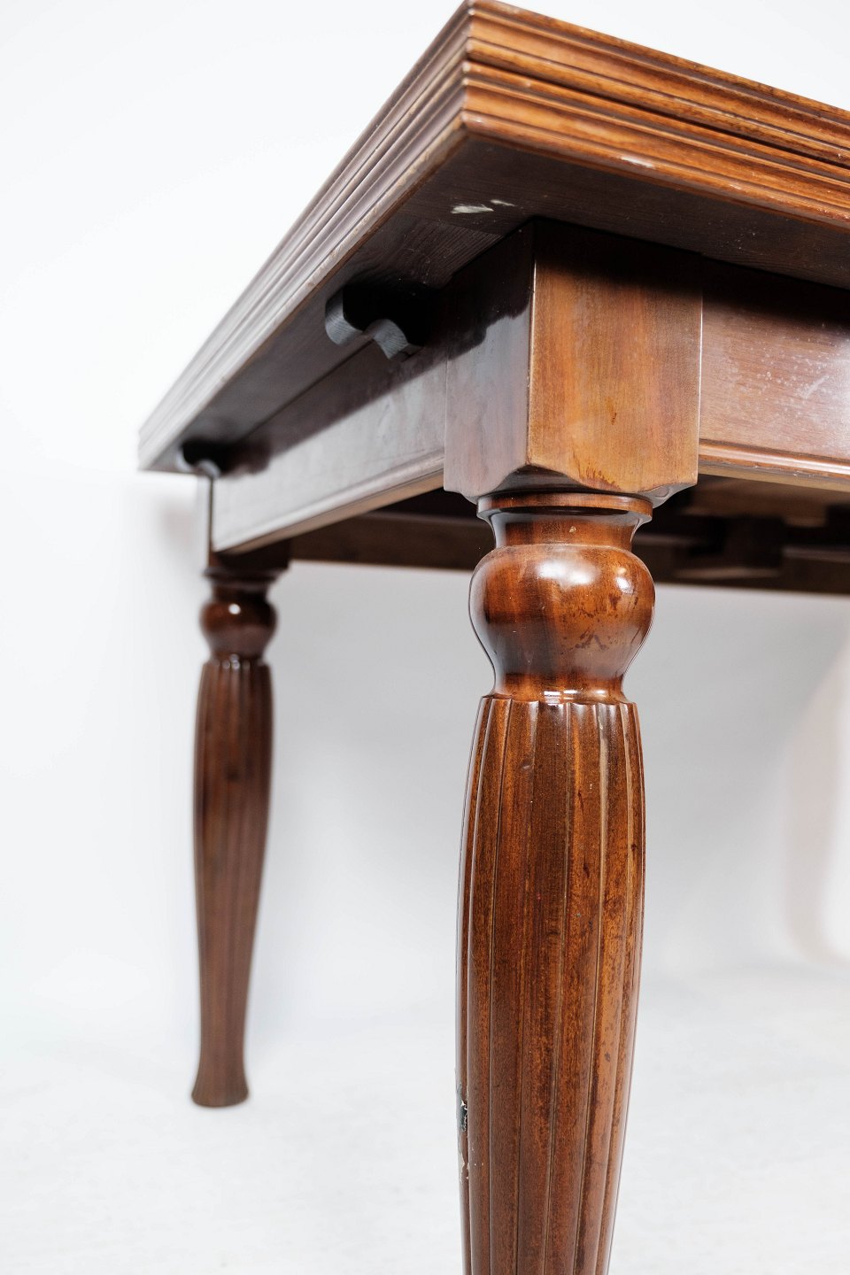 SoldDining table in mahogany with dark top plate and extensions, in great antique condition from around 1930.