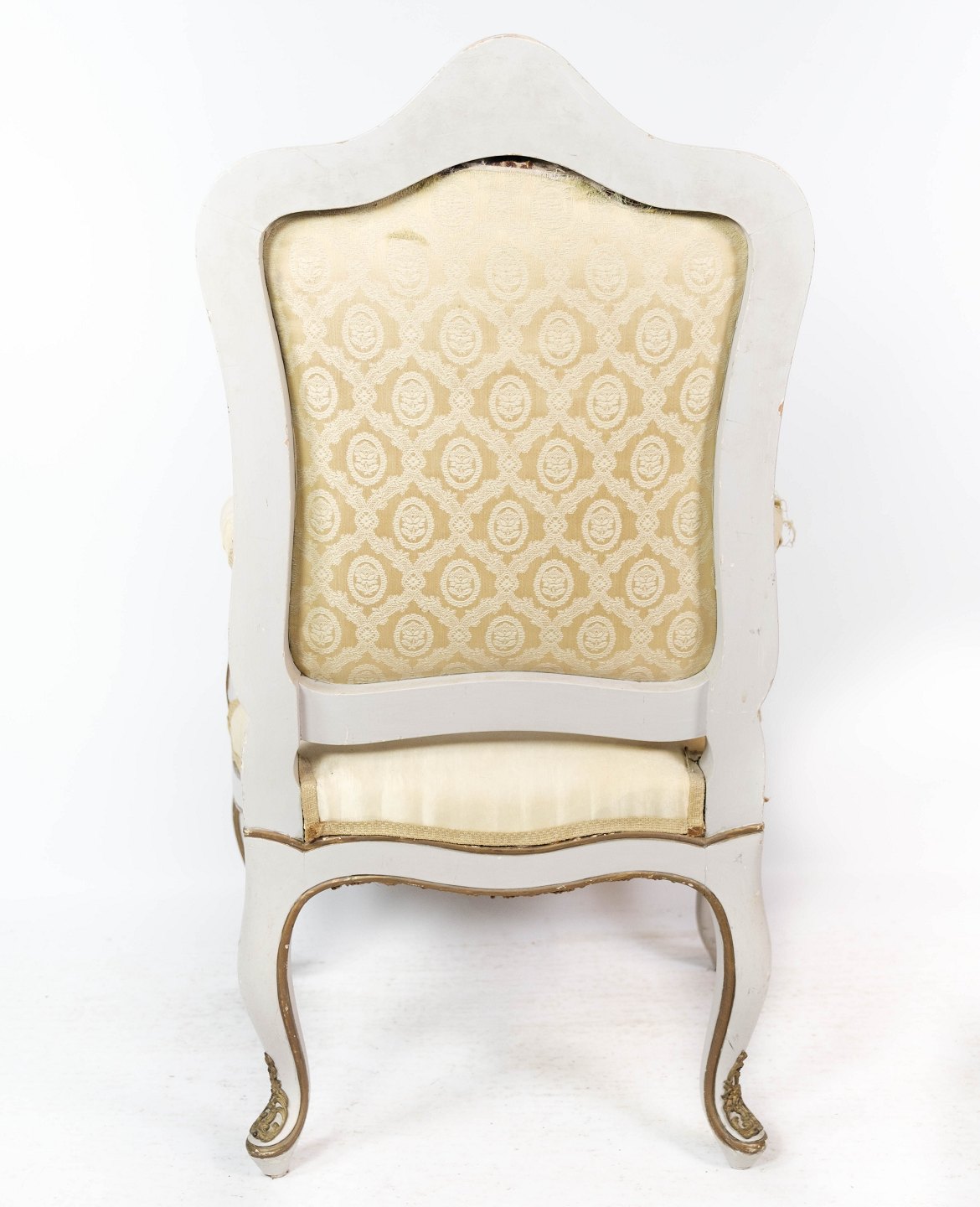Armchair of white painted wood and upholstered with light fabric, in great antique condition from around 1880.