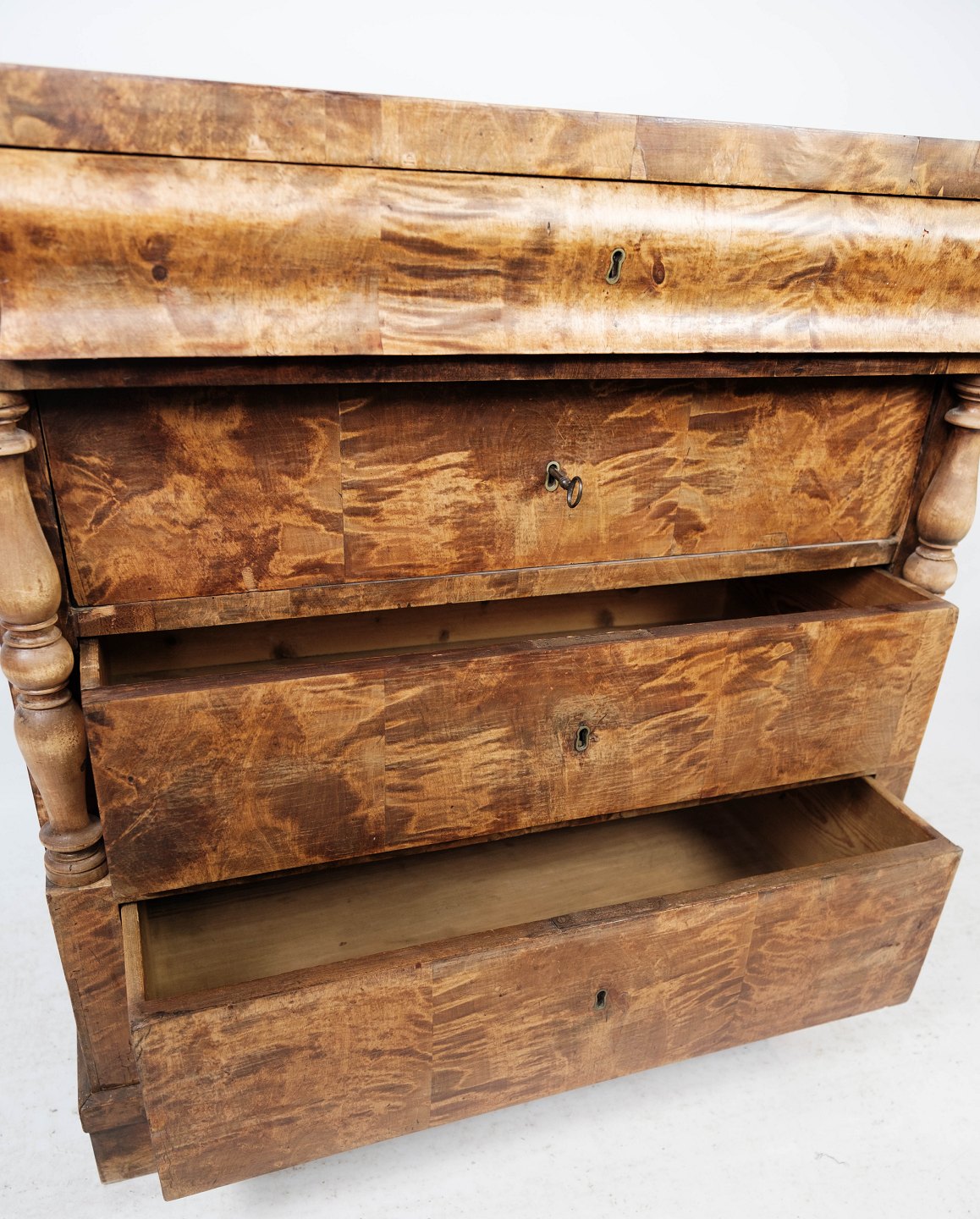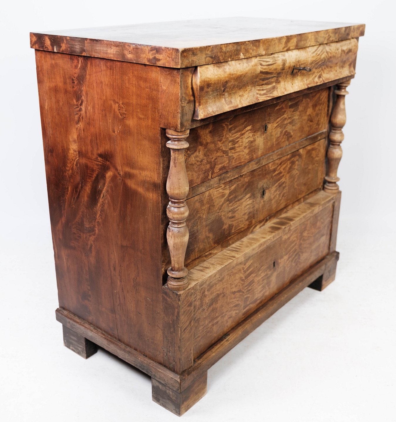 SoldLate Empire chest of drawers of birch wood from around the 1840s. The chest is in great antique condition.