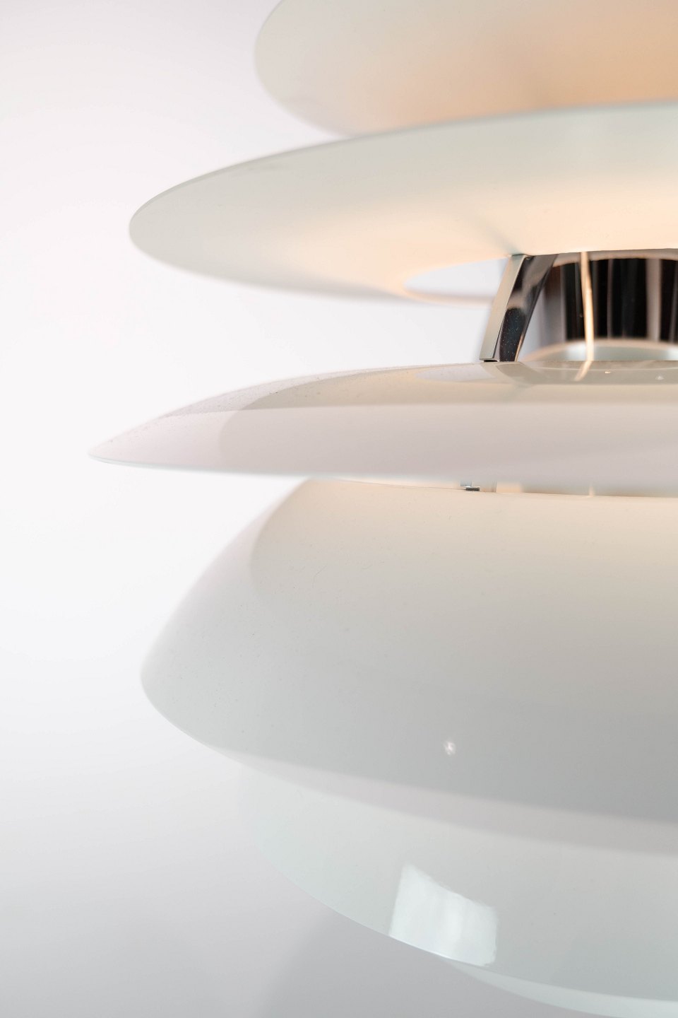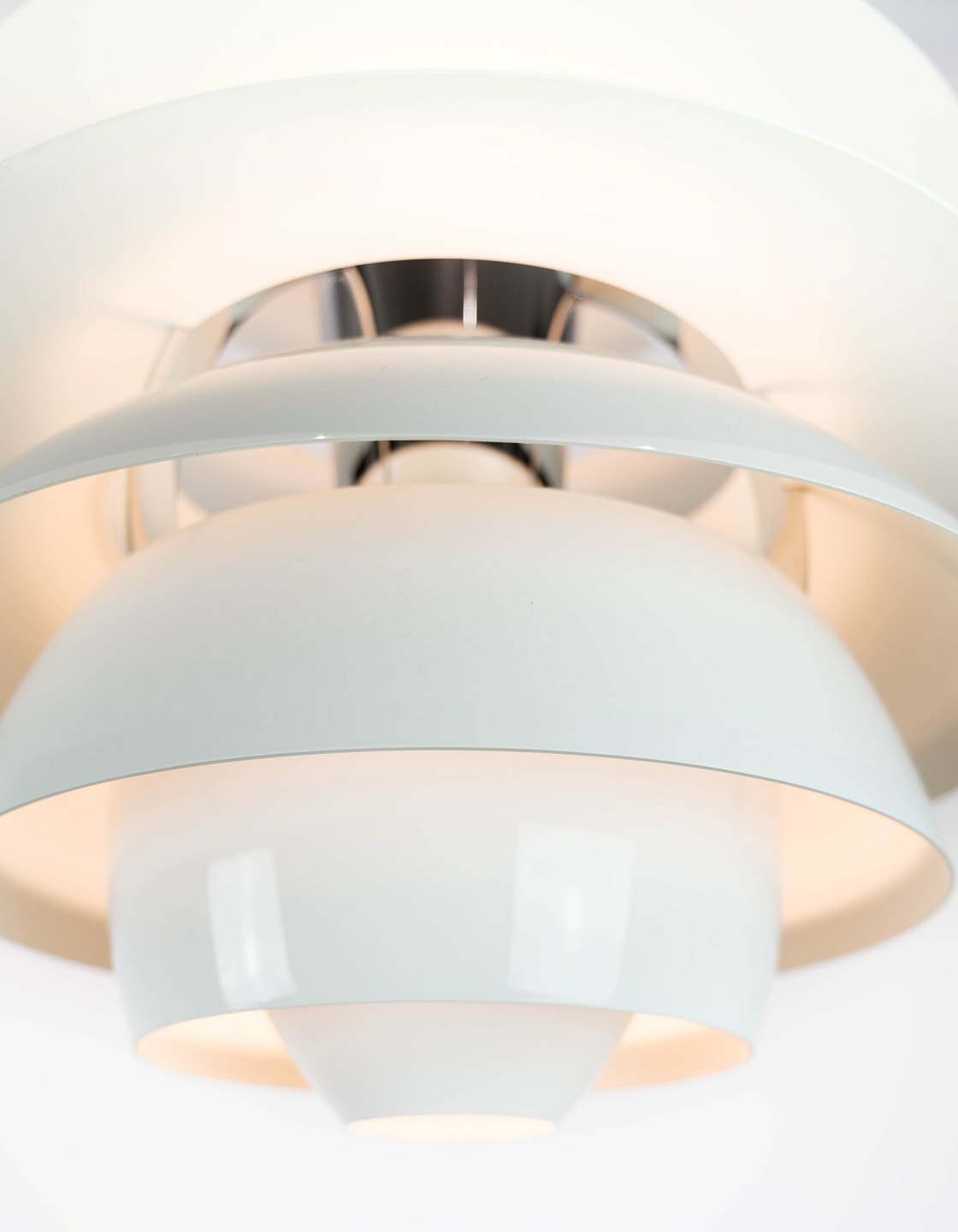 PH Snowball with white lacqured shades designed by Poul Henningsen and manufactured by Louis Poulsen. The lamp is in great vintage condition.