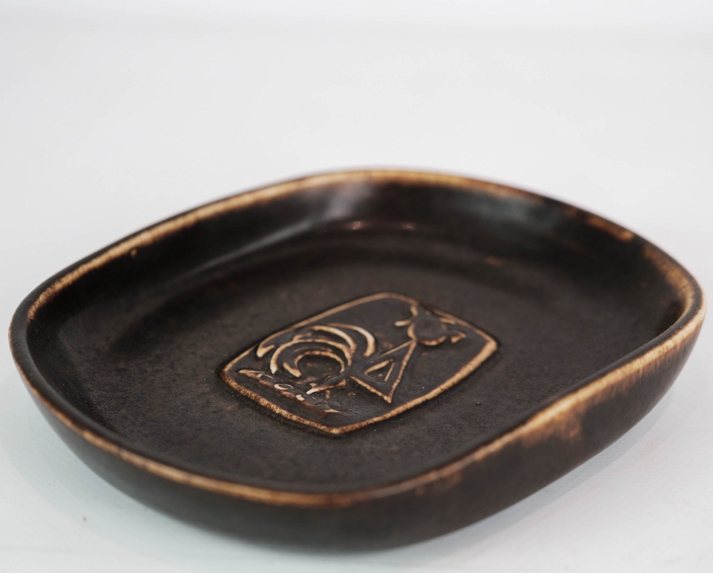 SoldCeramic dish in brown colors by the artist Eva Stæhr-Nielsen for Saxbo. The dish is in great vintage condition.
