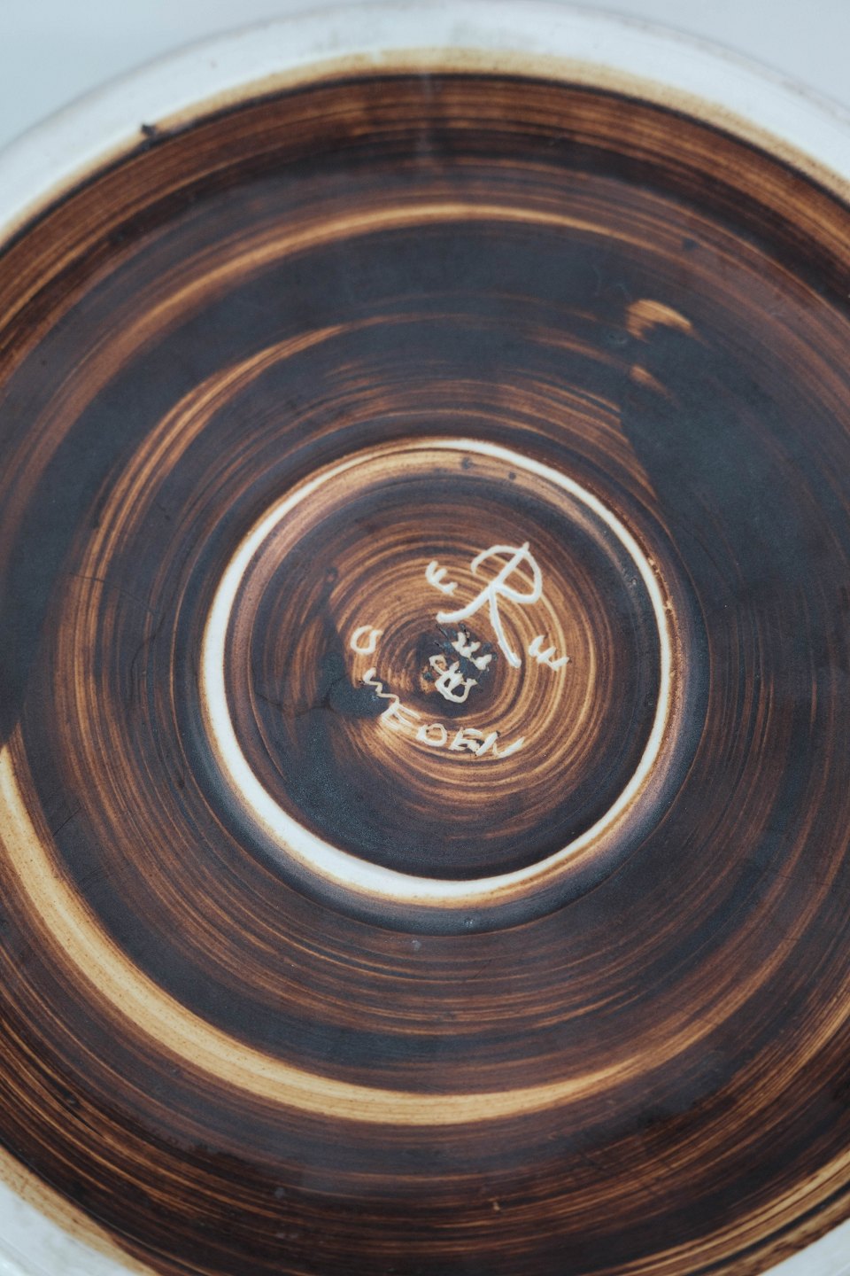 SolgtRundt keramik fad i grønne farver af den svenske kunster Carl-Harry Stålhane for Rørstrand. Fadet er i flot brugt stand.