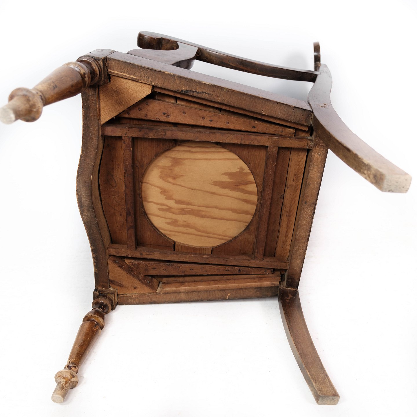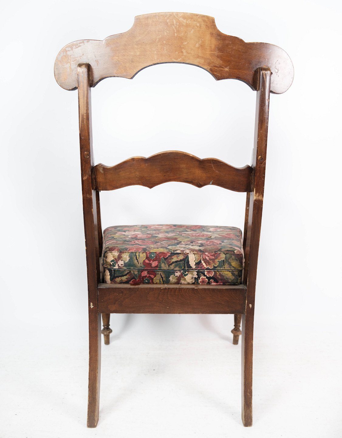 Antique armchair of mahogany and upholstered with floral fabric from the 1880s.