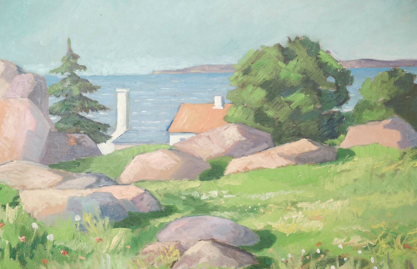 SoldPainting on canvas with nature motif and gilded frame, signed CK from the 1950s.