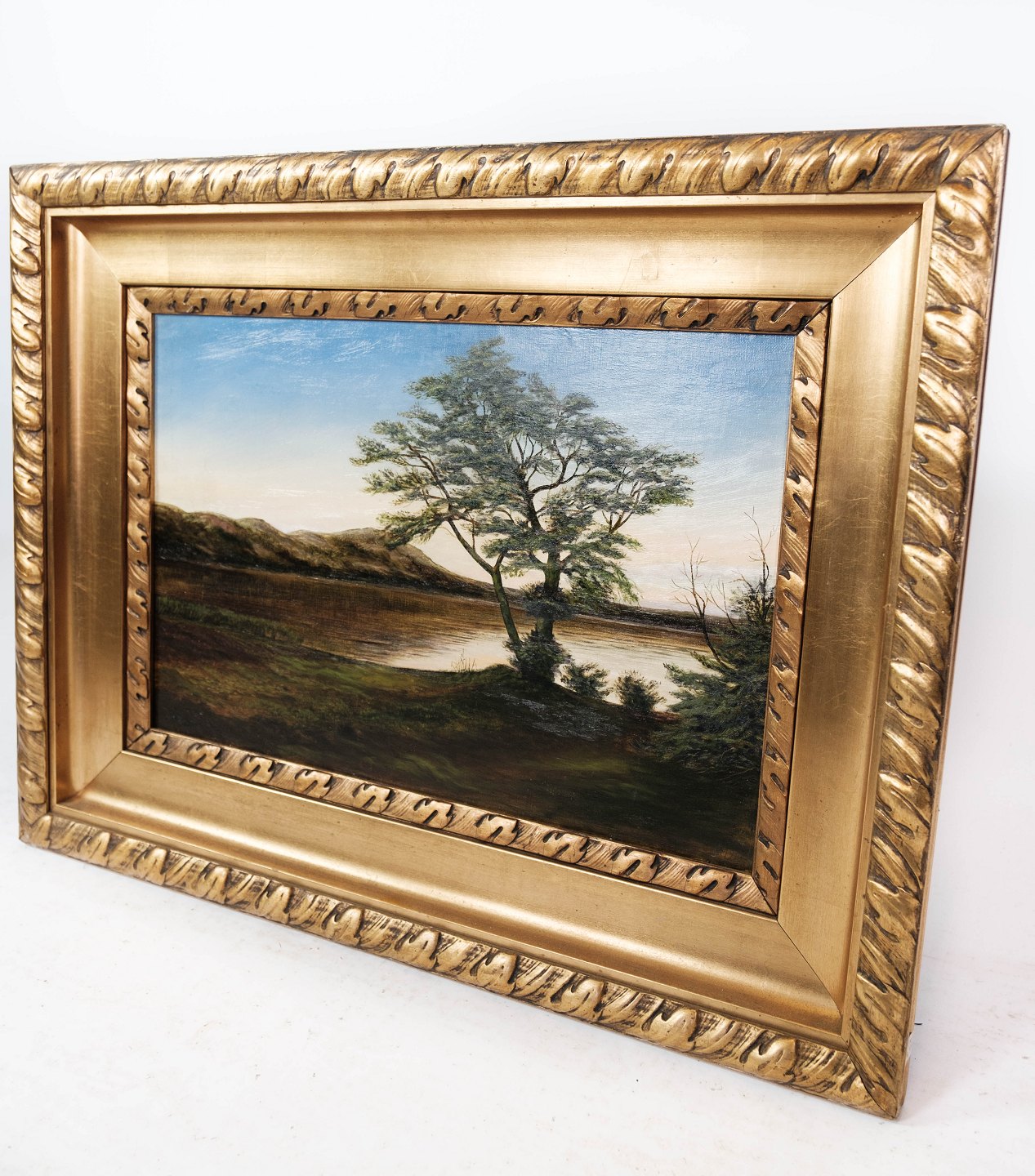 Painting on canvas with nature motif and with wide gilded frame from the 1910s.