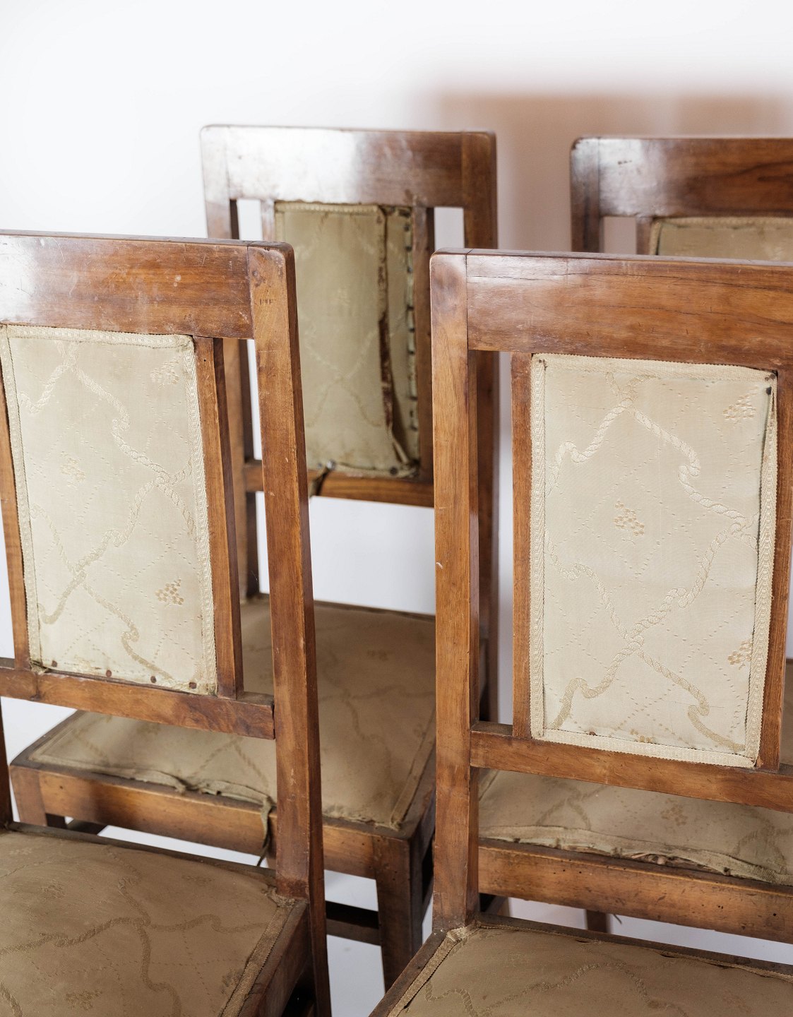 Set of four dining room chairs of mahogany with original upholstery from the 1920s.