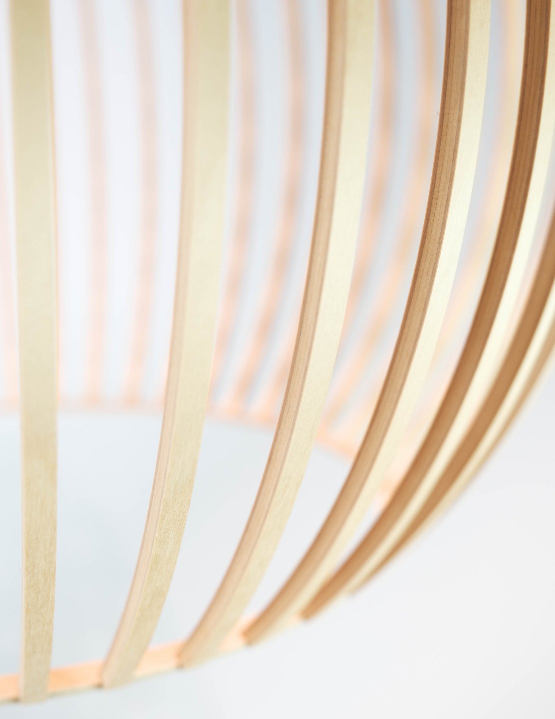 SoldSecto Octo, model 4240, pendant of birch wood, of Finnish design. Very modern form of lighting suitable for any environment. The design is known among decorators and architects. The straw color creates a very neutral base and very smooth in the mood. The lamp is in great vintage condition.