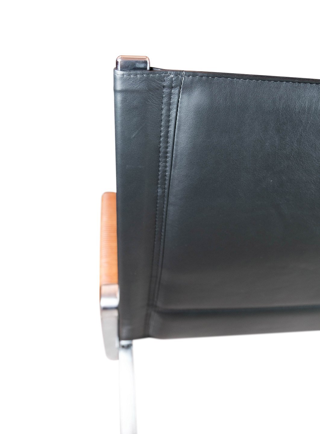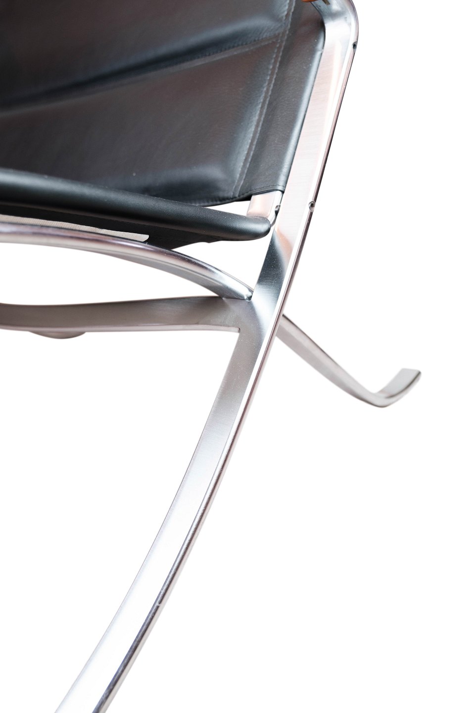 Easy chair, model FK82 - X-chair, designed by Preben Fabricius and Jørgen Kastholm in 1968 and manufactured by Lange Production. The chair is upholstered with black leather and is in good condition.