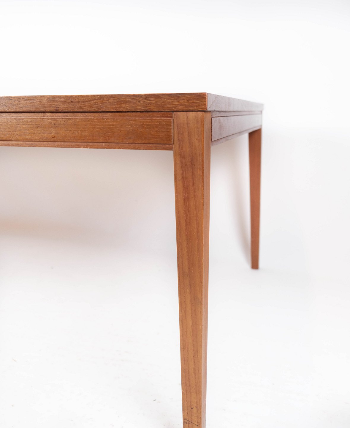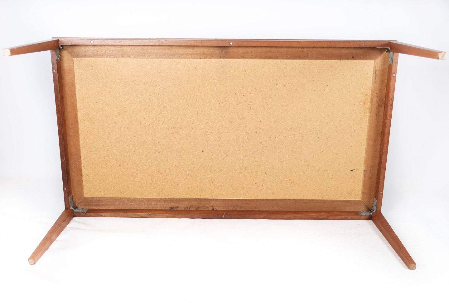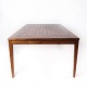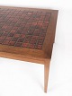 Sofabord i teak med røde klinker, af dansk design fra 1960erne.