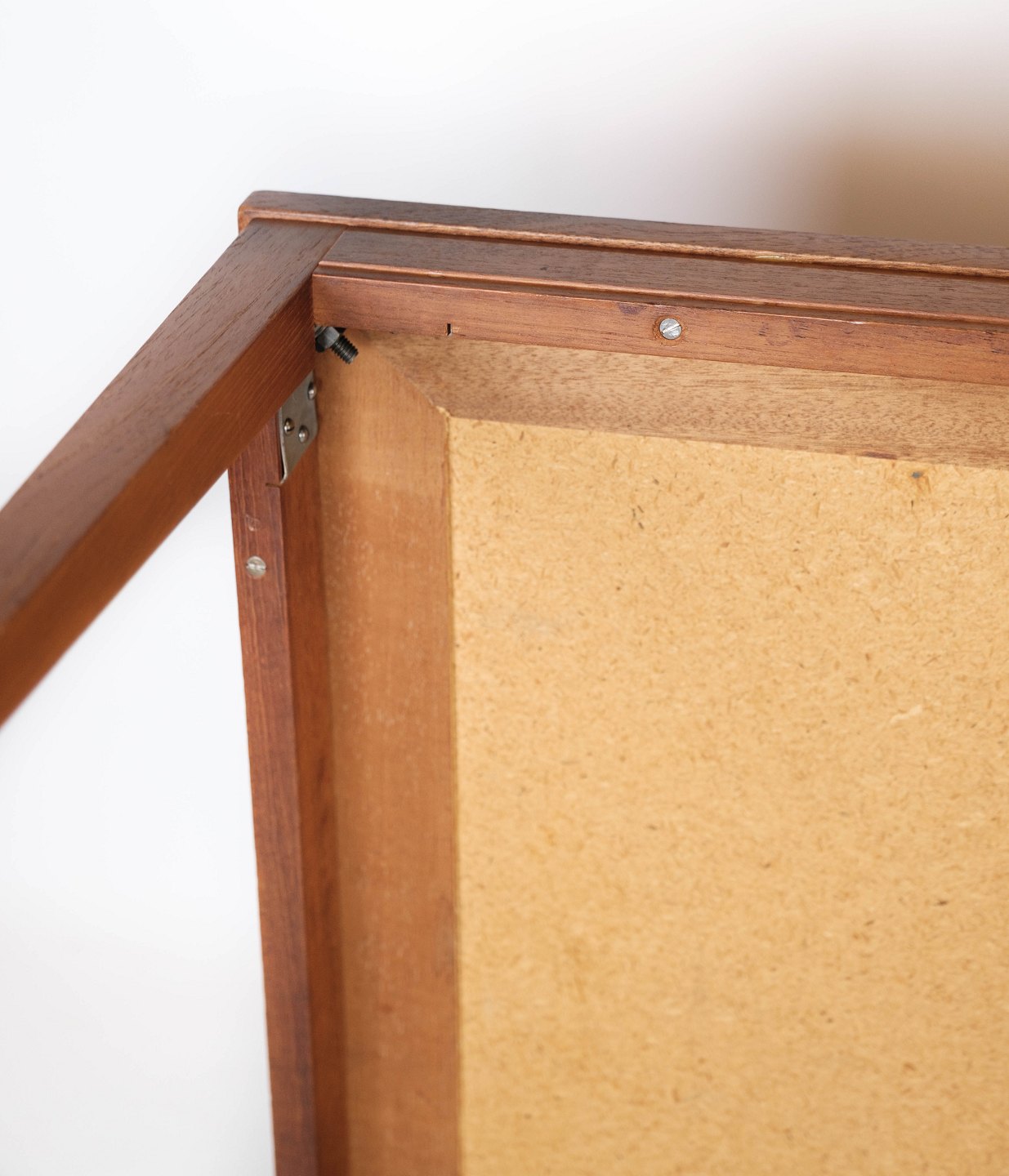 Sofabord i teak med røde klinker, af dansk design fra 1960erne. Bordet er i flot brugt stand.