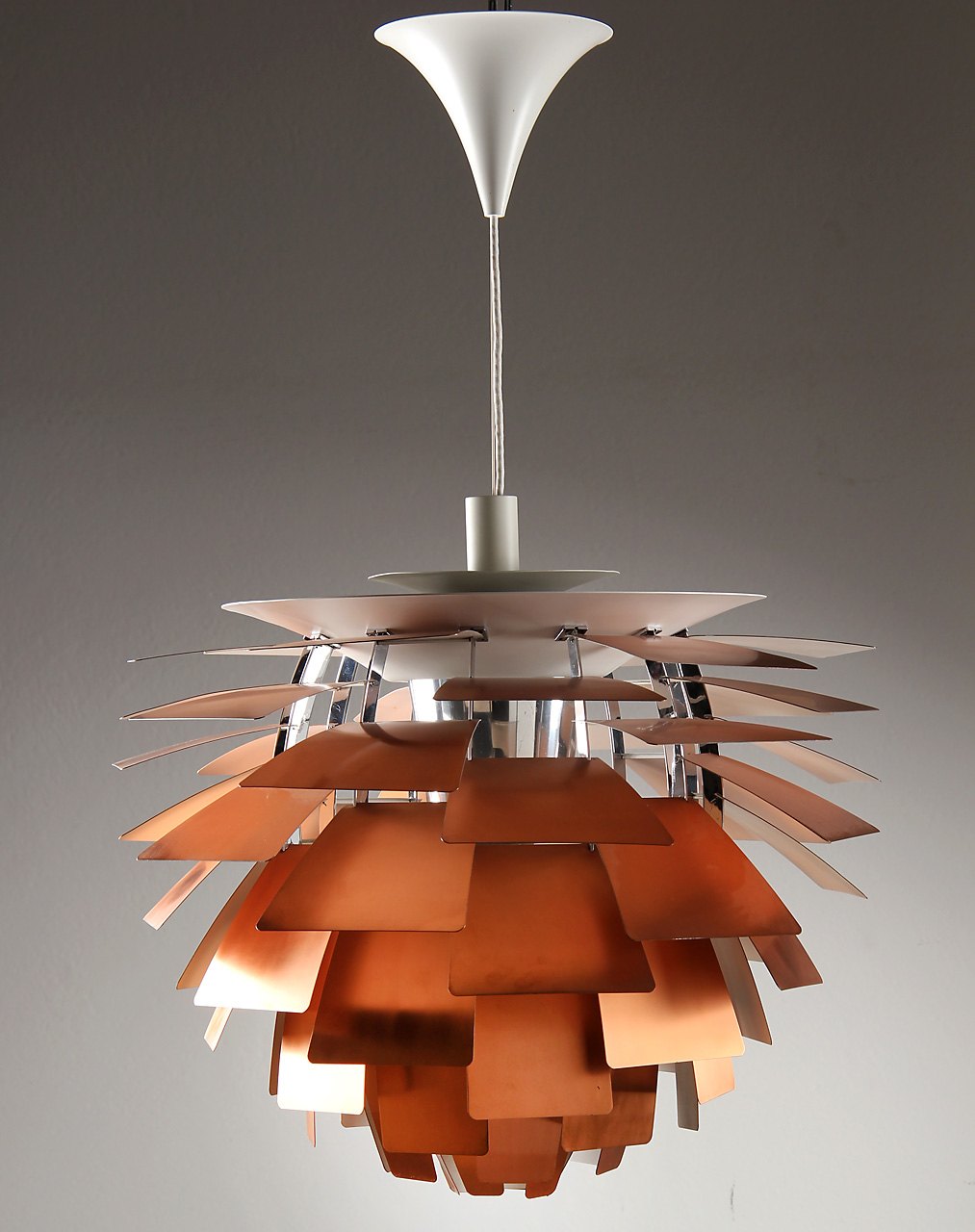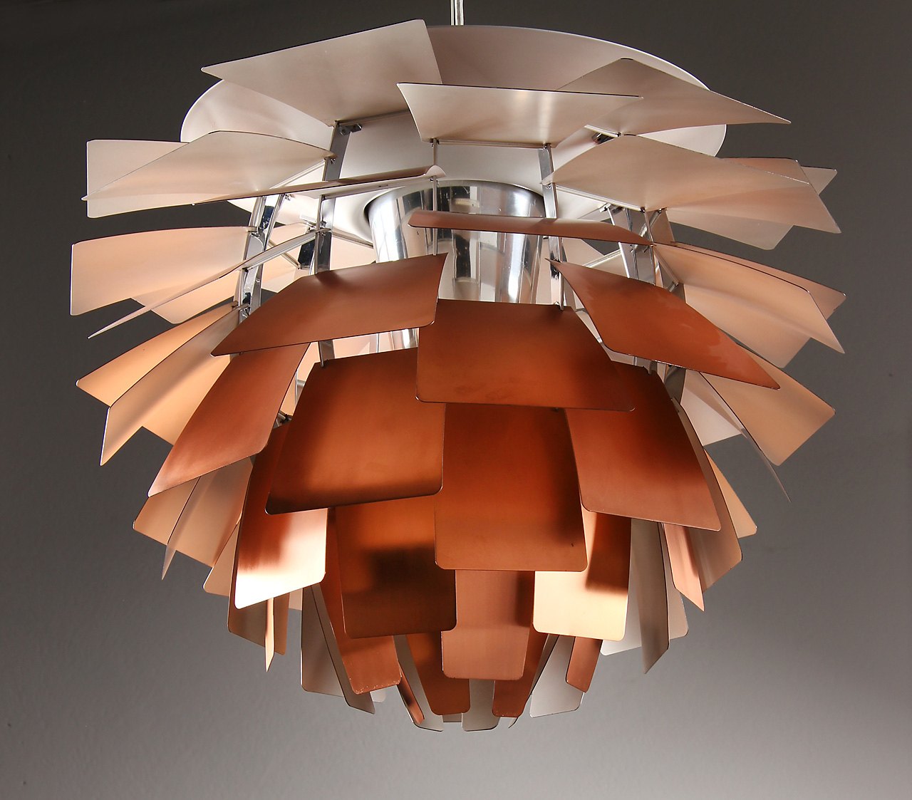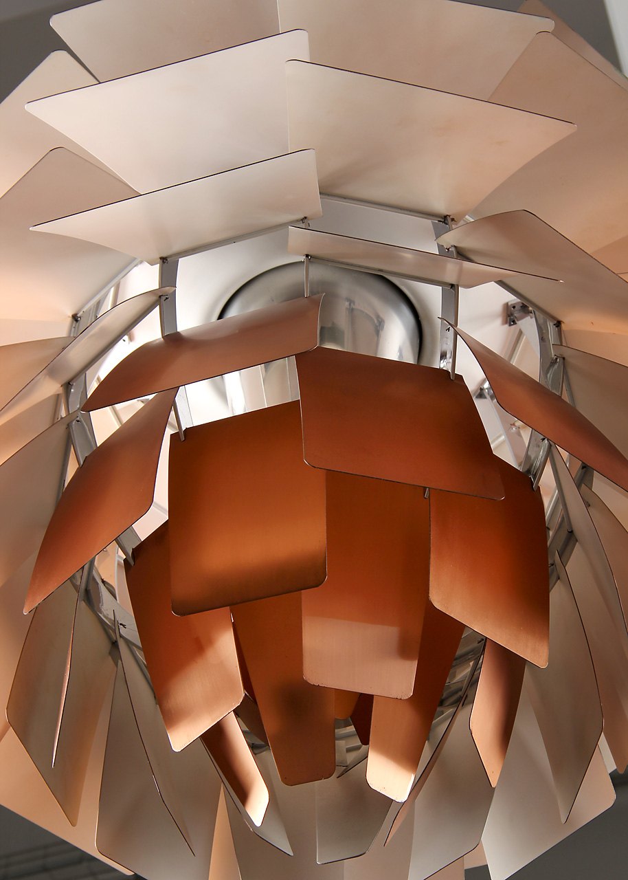 Artichoke, Ø72, of copper designed by Poul Henningsen in 1958 and manufactured by Louis Poulsen