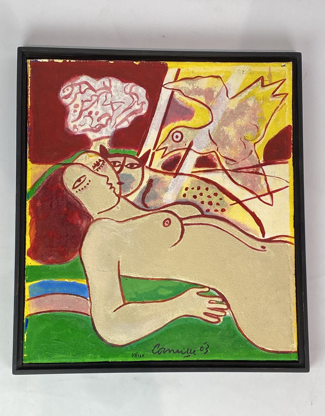 SolgtTerragrafi i stærke farver signeret Corneille, 33/120 fra 2003. Maleriet er med mørk ramme og i flot brugt stand.