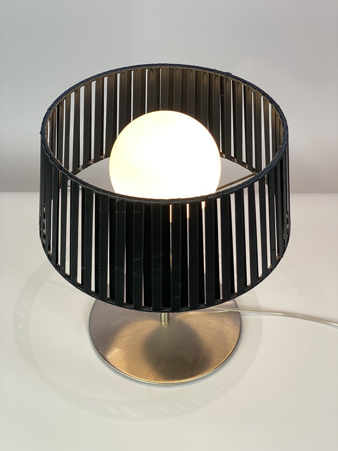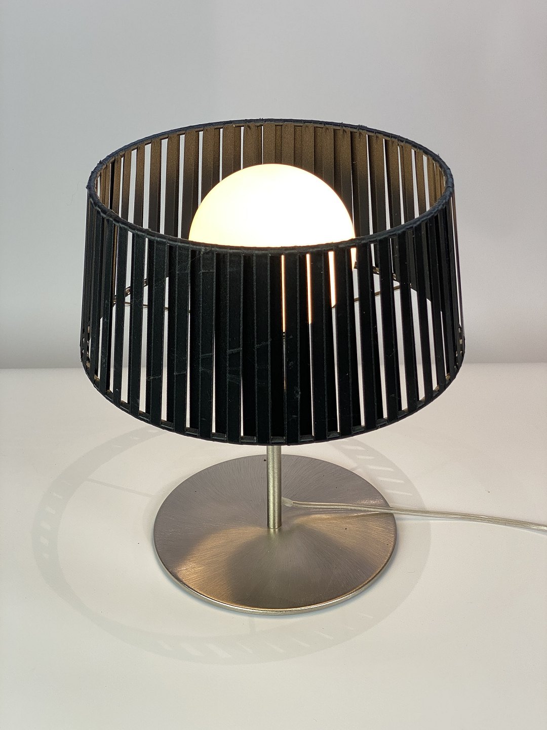 Bordlampe, model Ribbon, af Italiensk design af Morosini fra 1980erne. Lampen er med sort skærm og stel af metal.