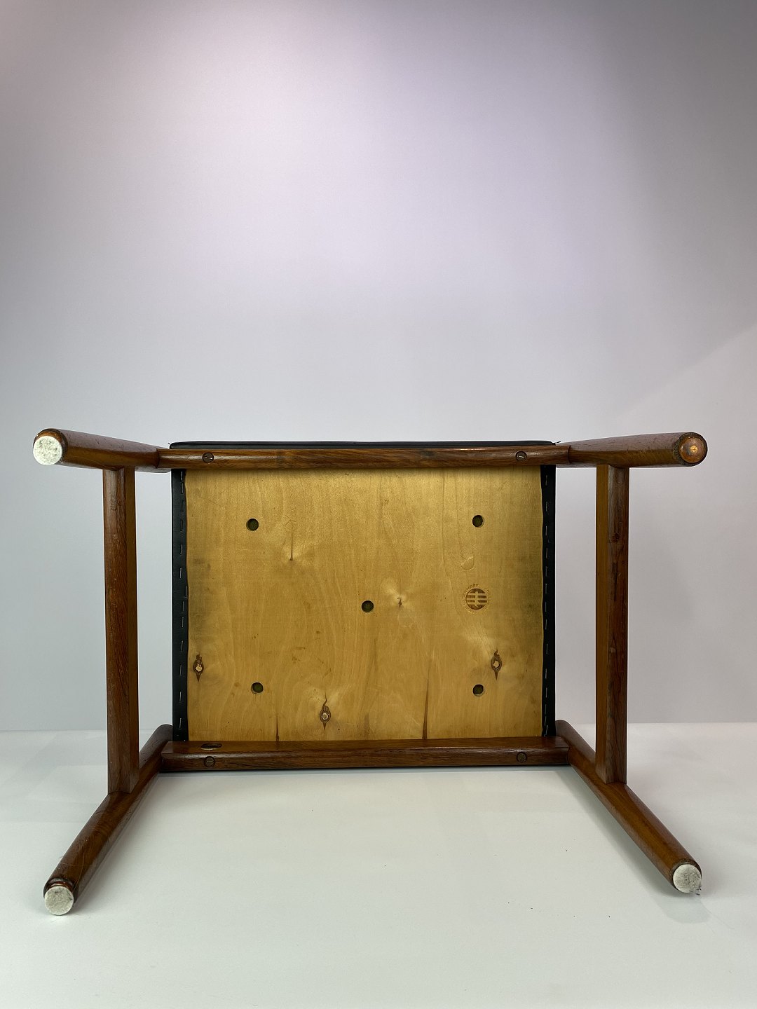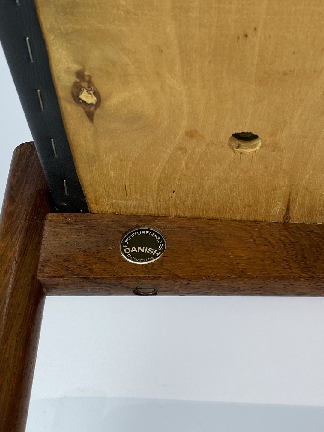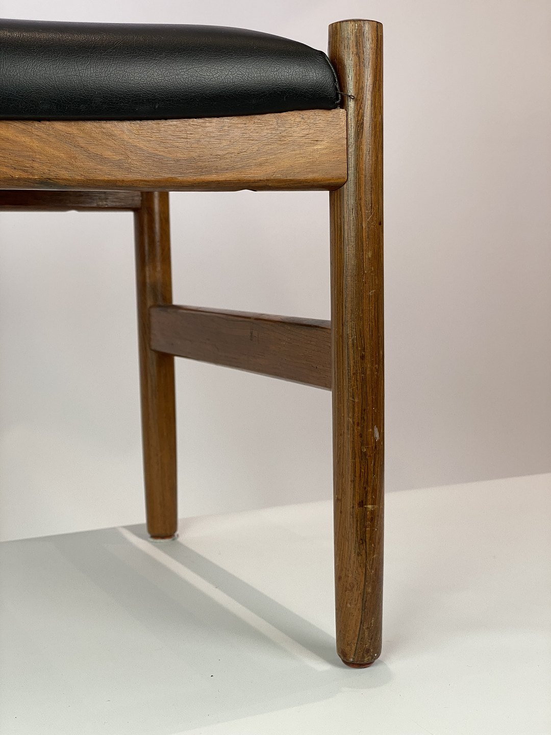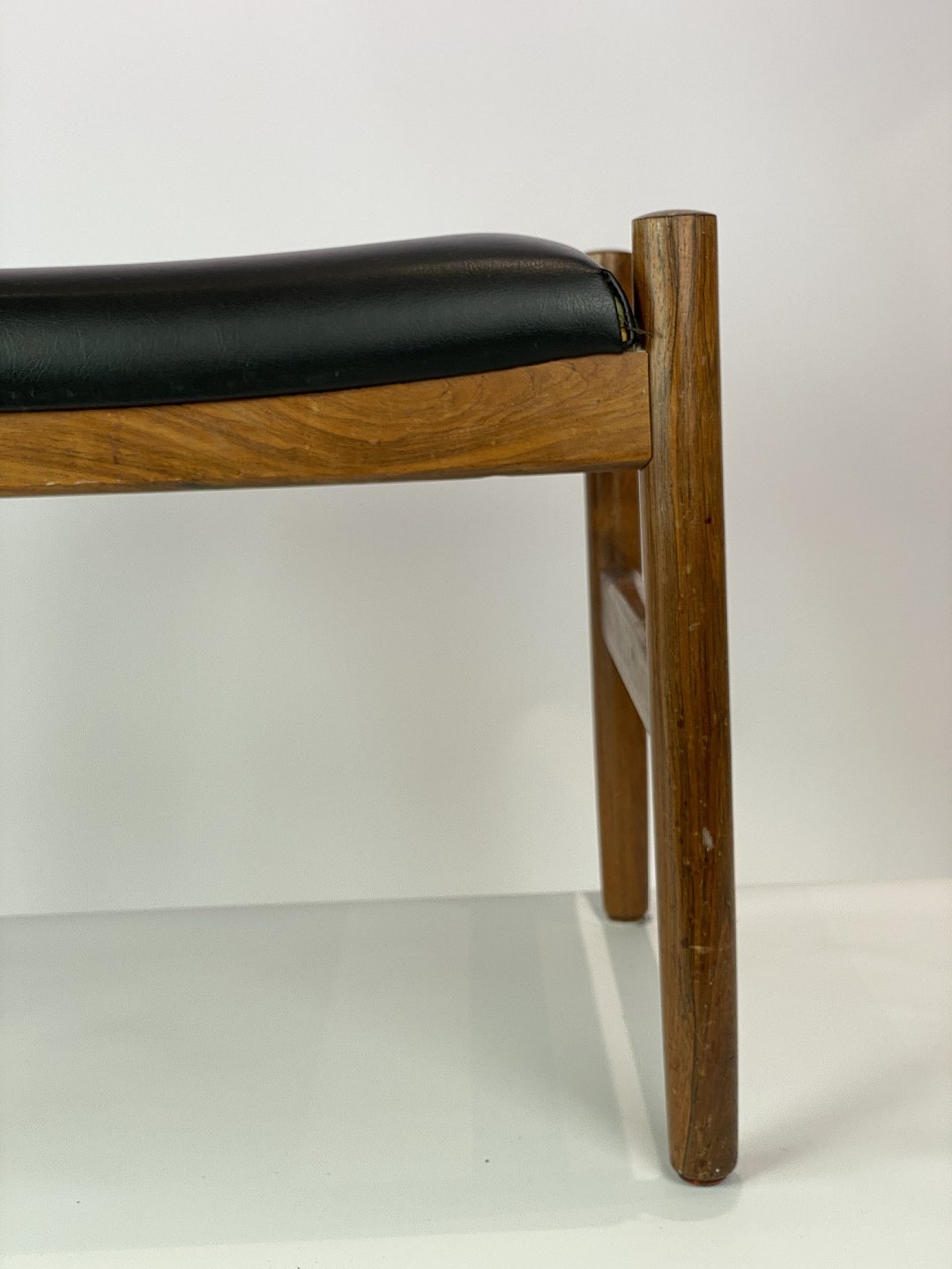 SoldStool of black leather and rosewood, of Danish design manufactured by Spøstrup Furniture in the 1960s. The stool is in great vintage condition.
