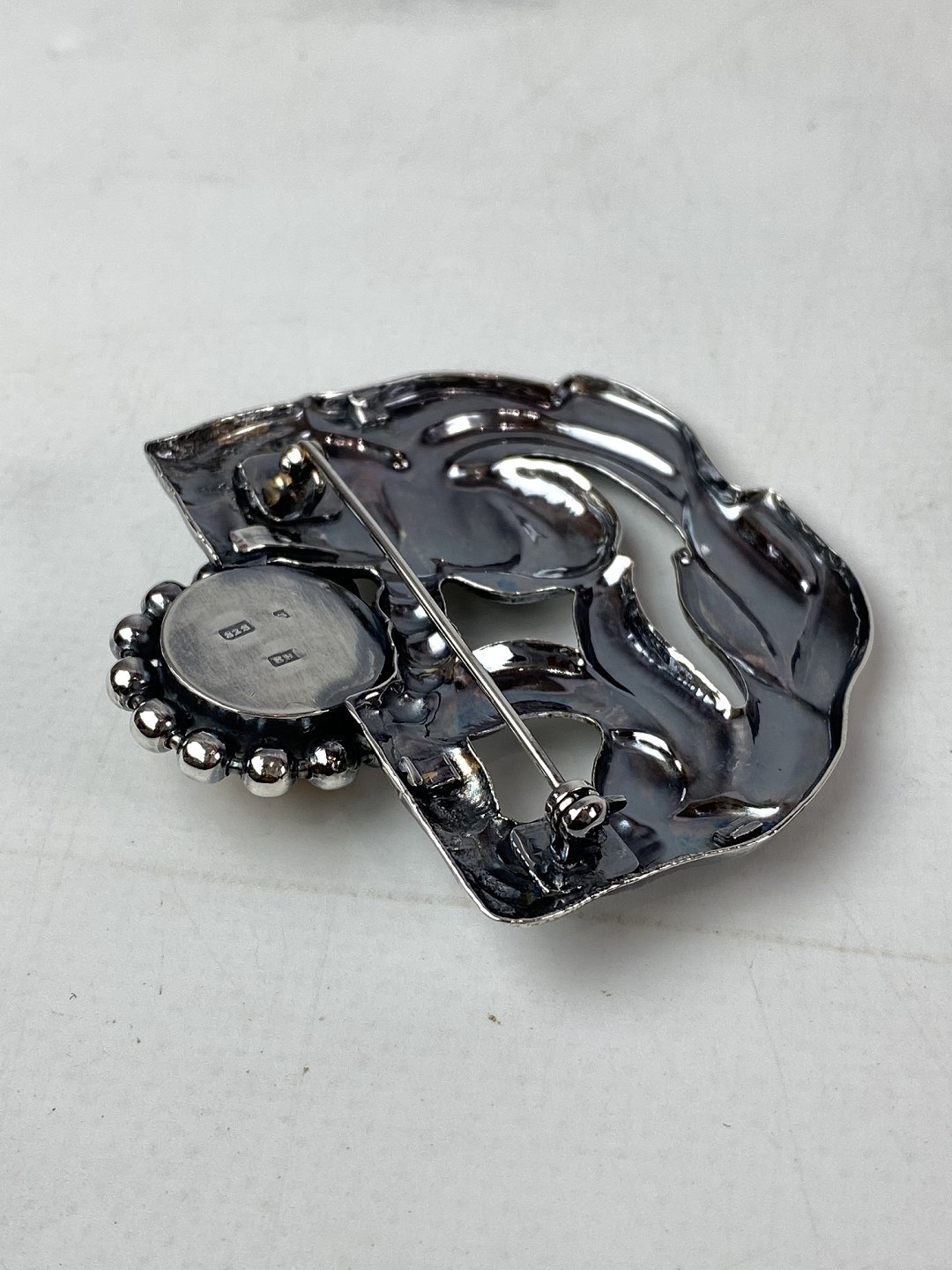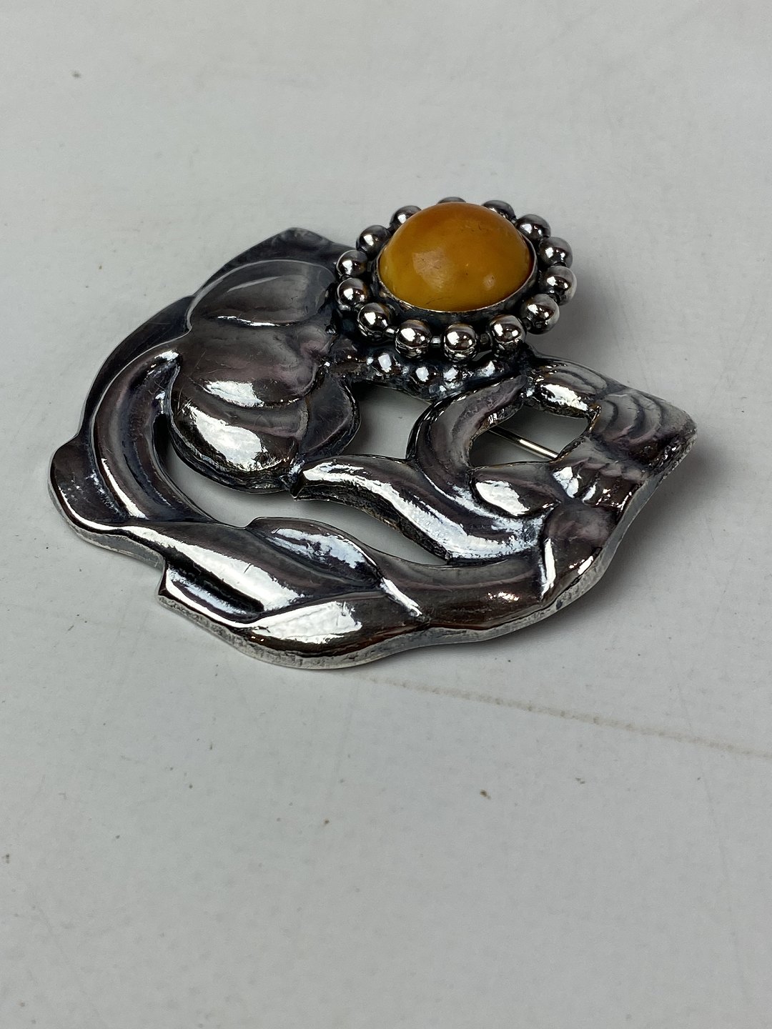 Brooch of 833 silver in the style of Art Nouveau with amber, stamped BH from the 1930s.