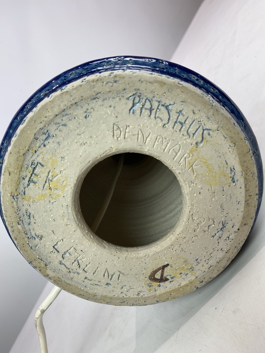 Ceramic table lamp with dark blue glaze by Palshus and Le Klint from the 1970s.