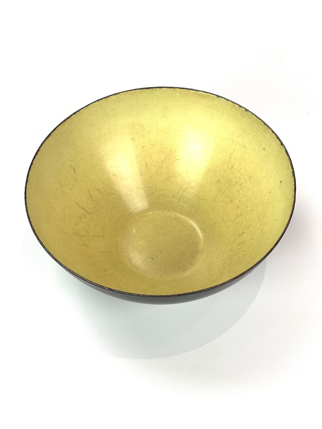 Krenit bowl by Herbert Krenchel of black metal with light green and yellow enamel from the 1960s. The bowl is of danish design and in great vintage condition.