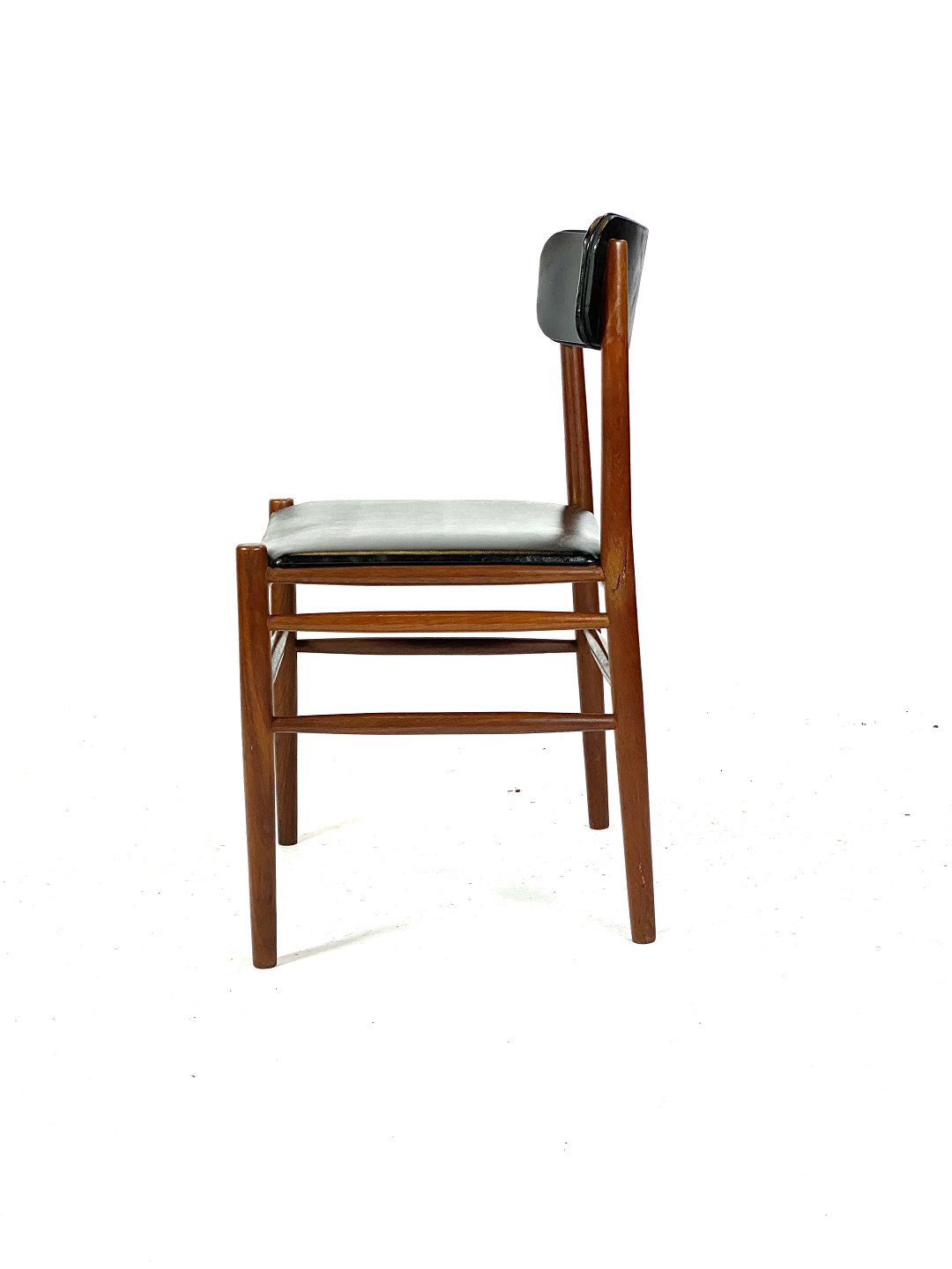Two dining room chairs in teak and upholstered with black leather of Danish design from the 1960s.