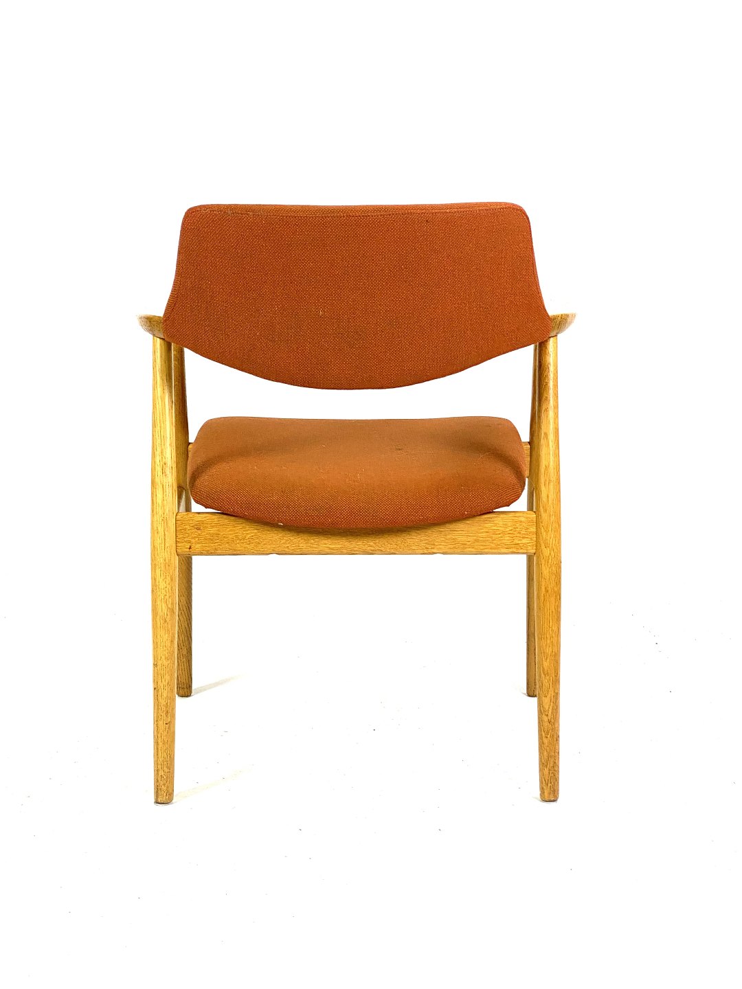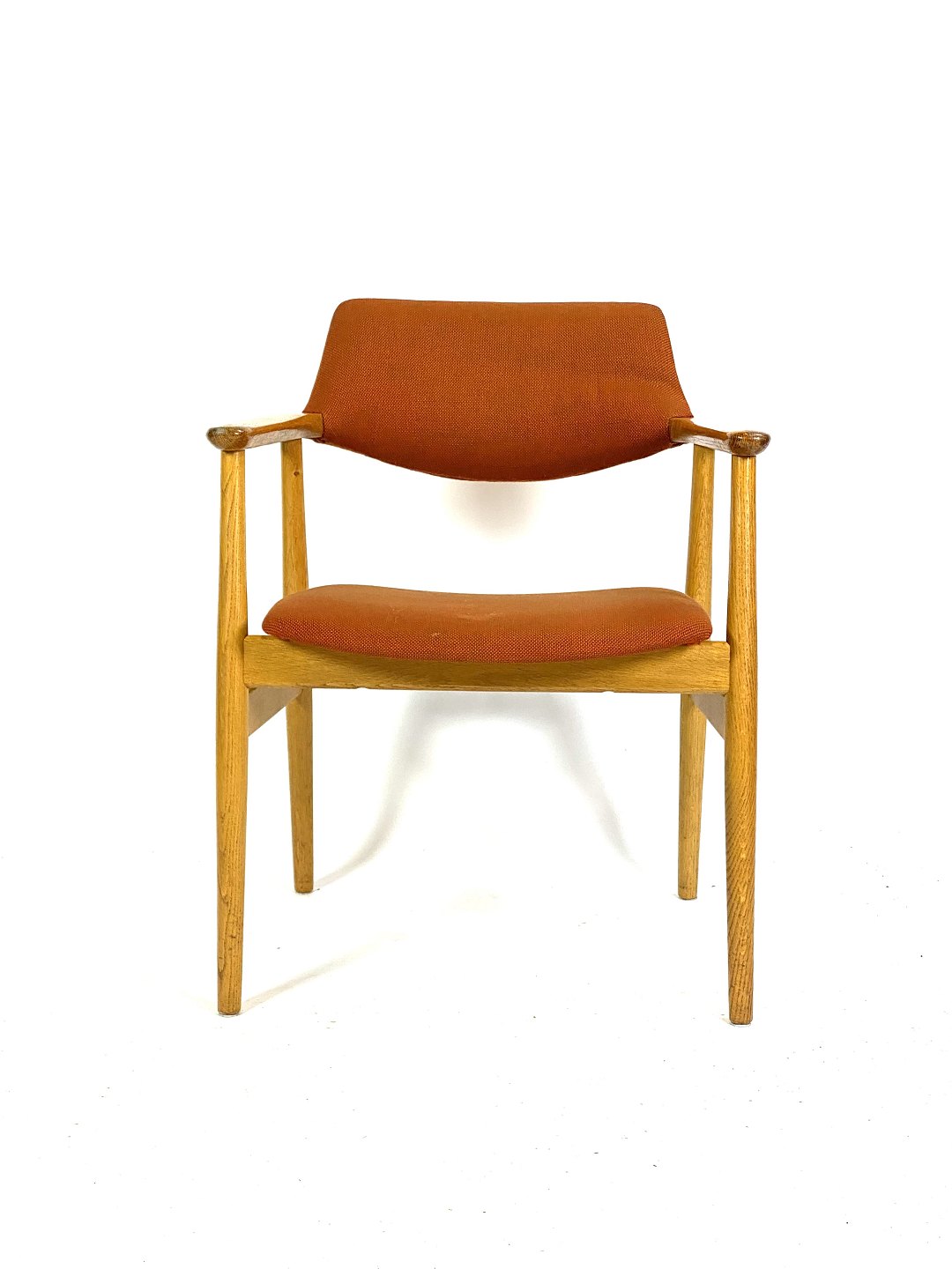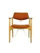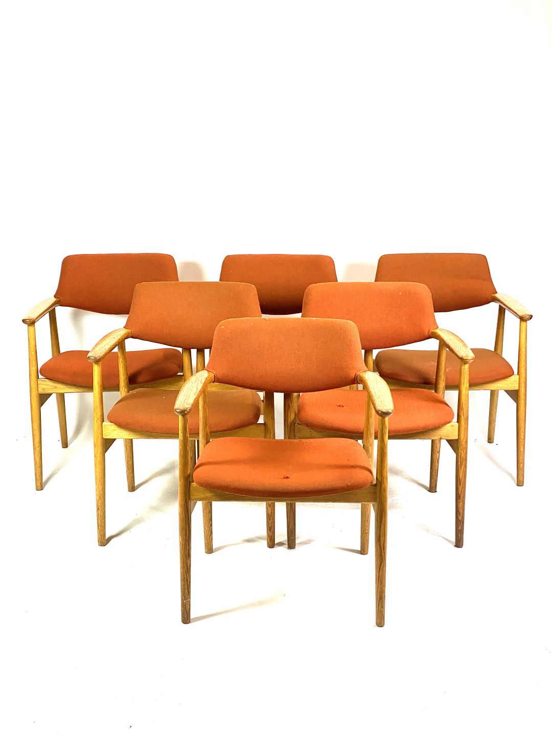 SolgtSeks armstole i eg og polstret med orange uldstof designet af Erik Kirkegaard fra 1960erne. Stolene er i flot brugt stand.