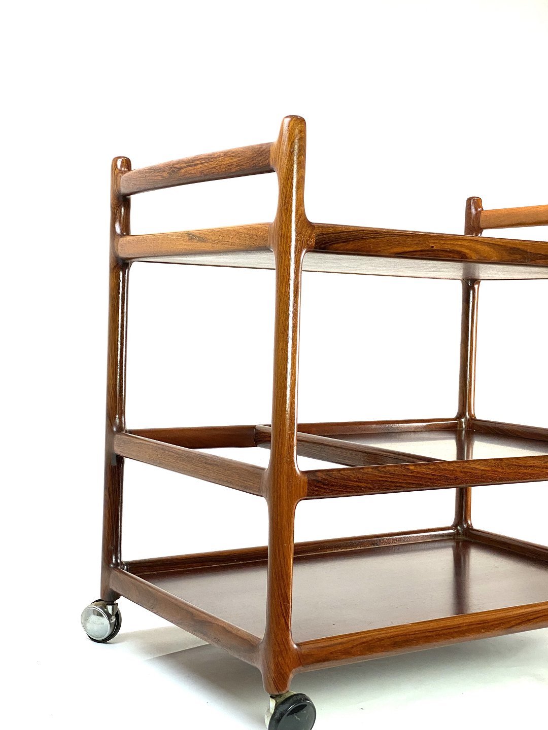 Tray table in rosewood designed by Johannes Andersen and manufactured by Silke Furniture Factory from the 1960s.