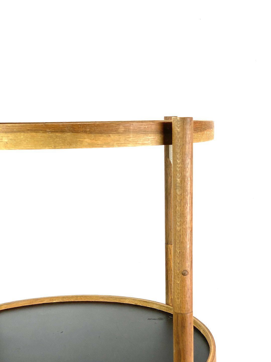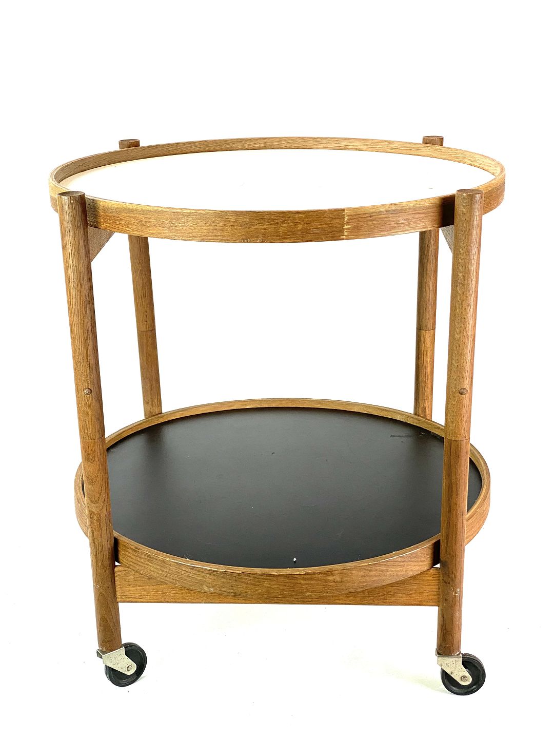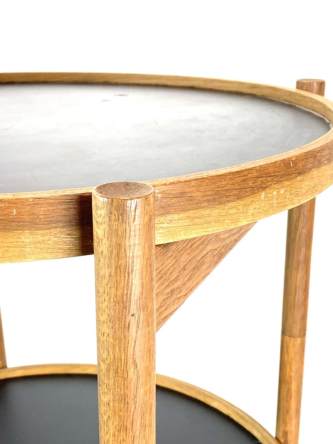 Bølling tray table of oak with black and white tabletop by Brd. Krüger from the 1970s.