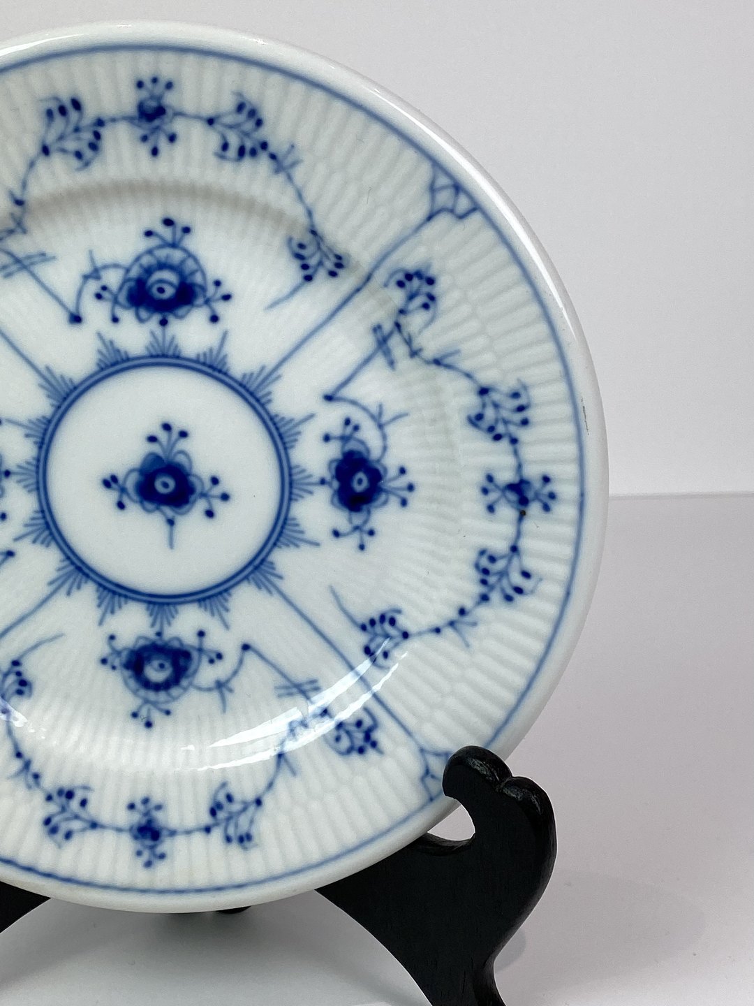 SolgtKgl. musselmalet riflet frokosttallerken, nr.: 2055.