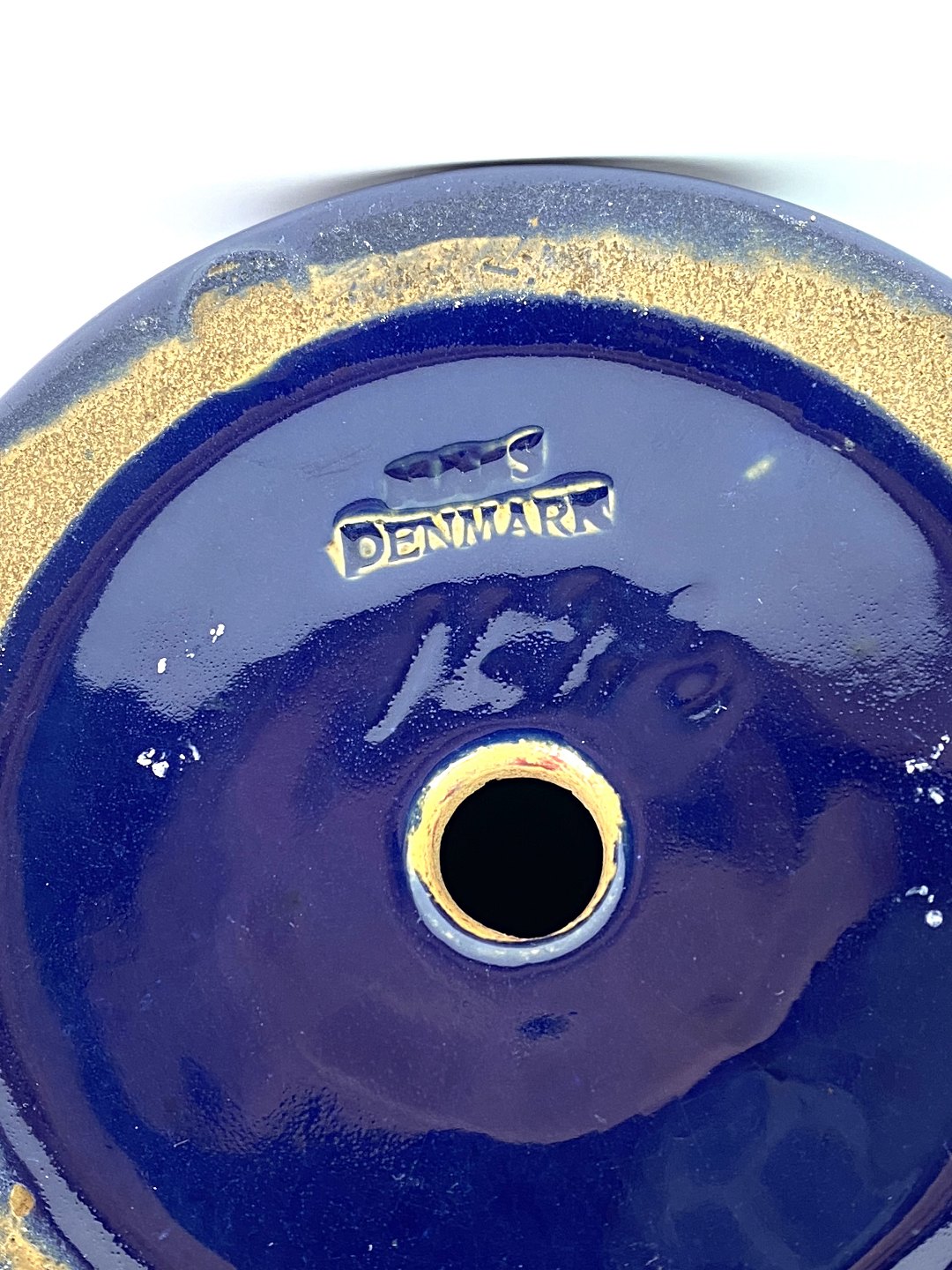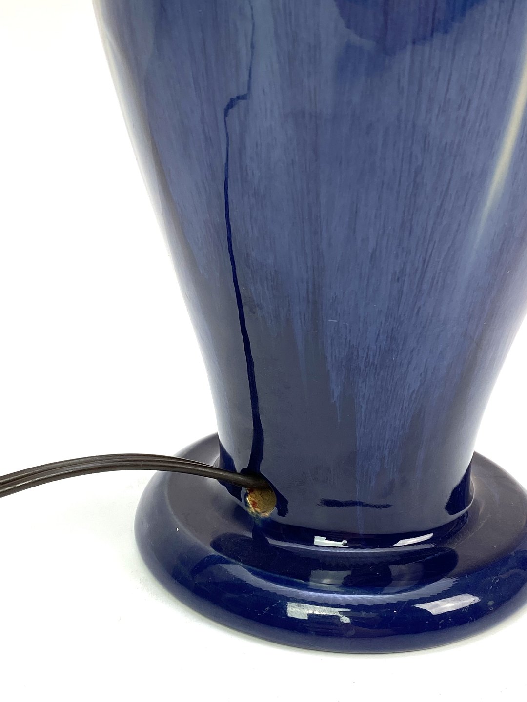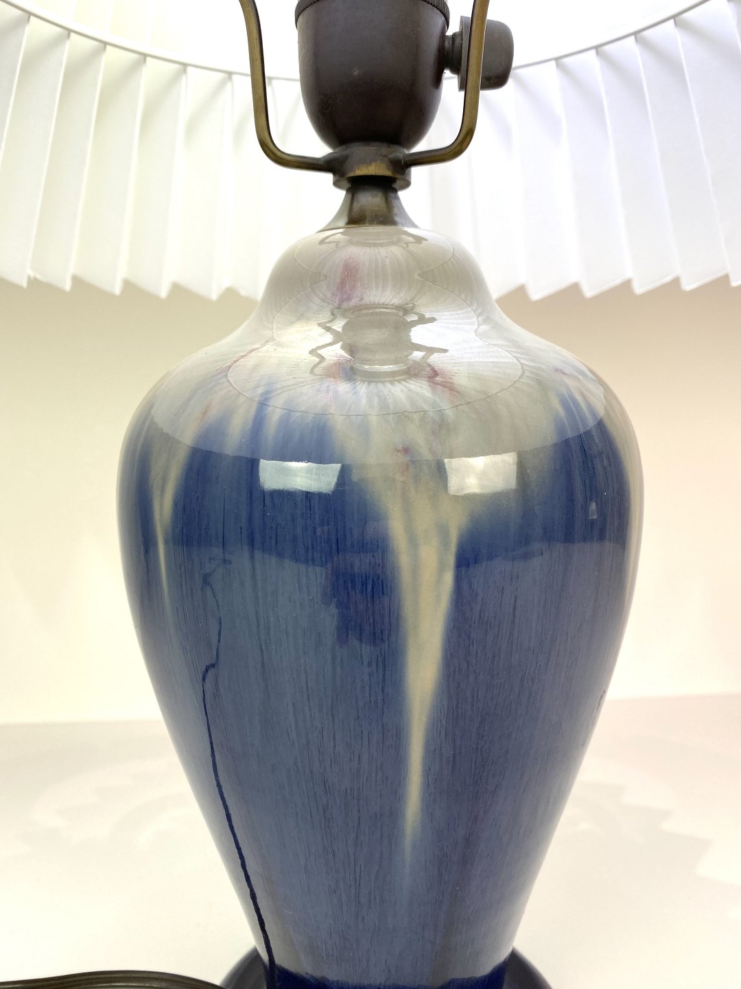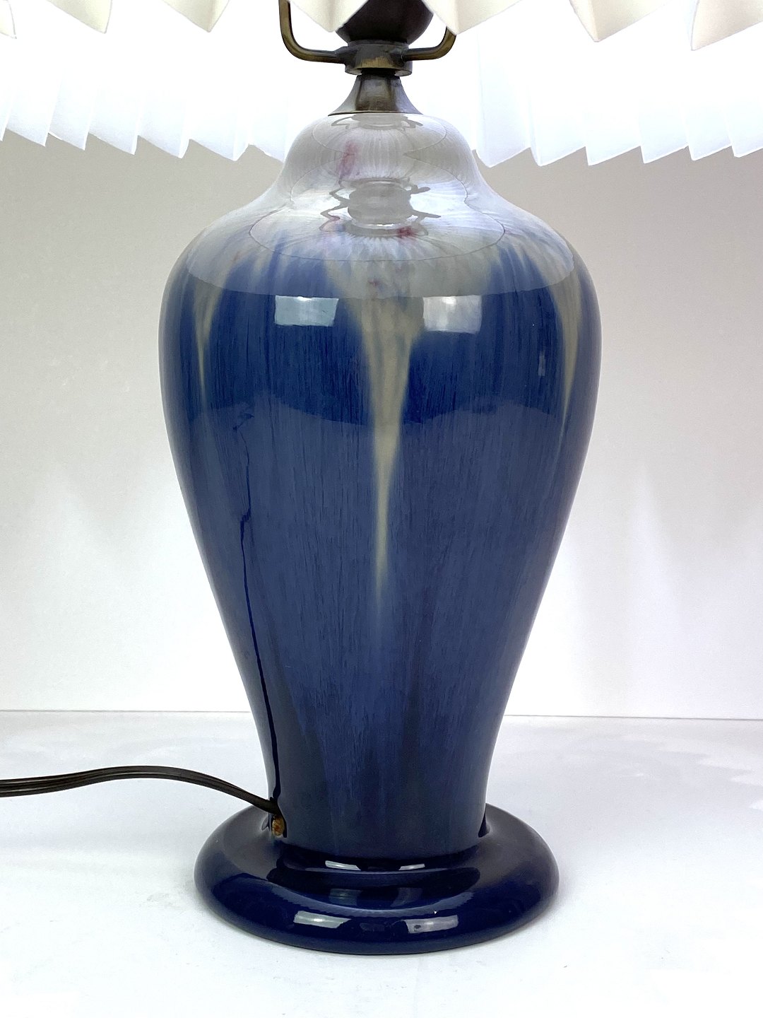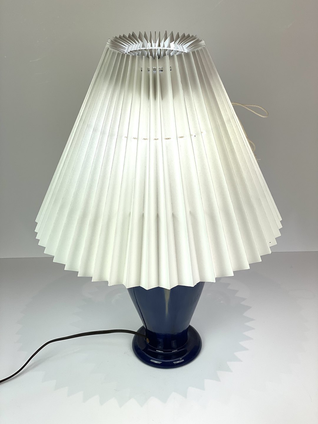 Keramik bordlampe med blå glasur og papir skærm, af Michael Andersen. Lampen er i flot brugt stand.