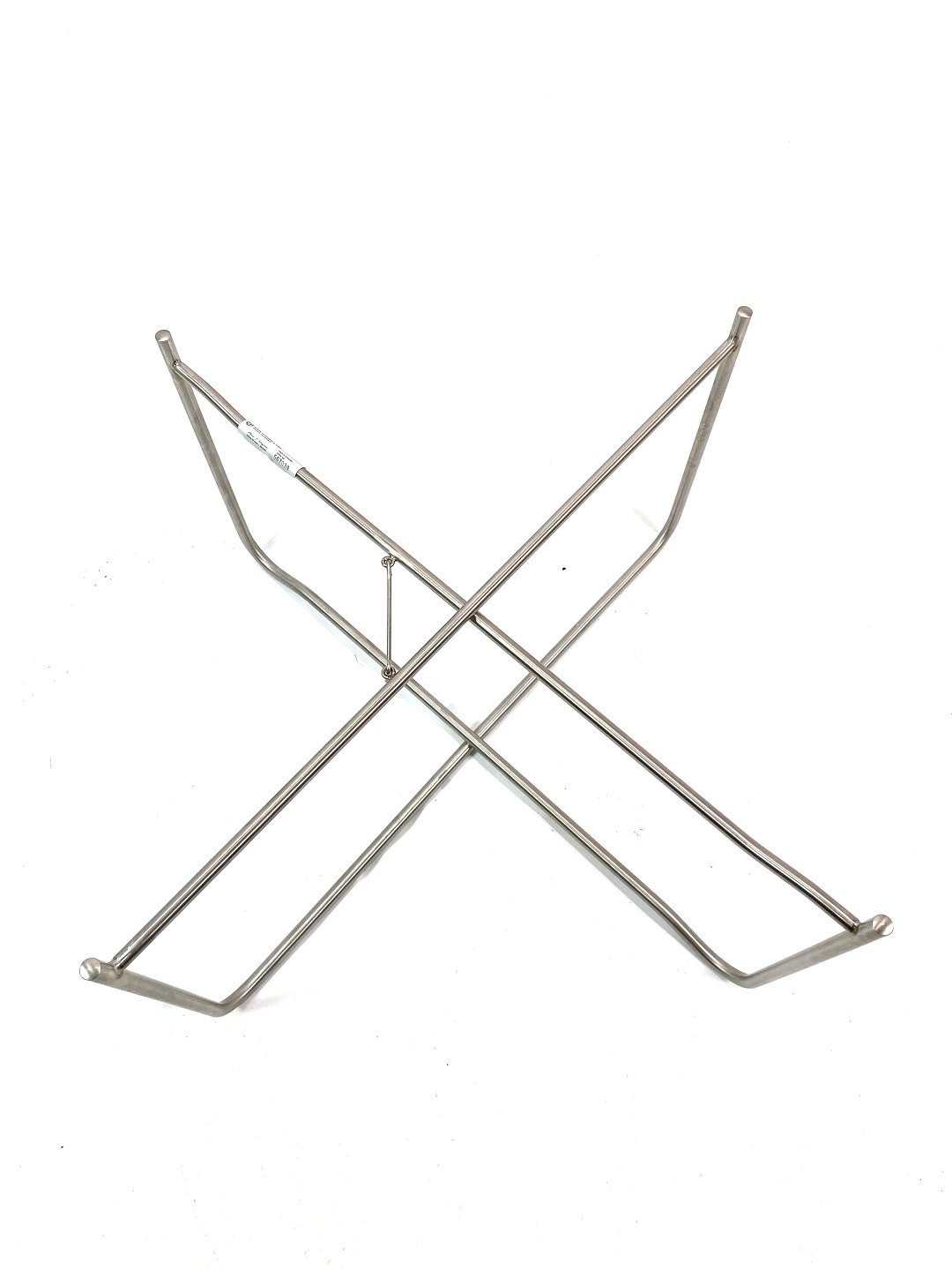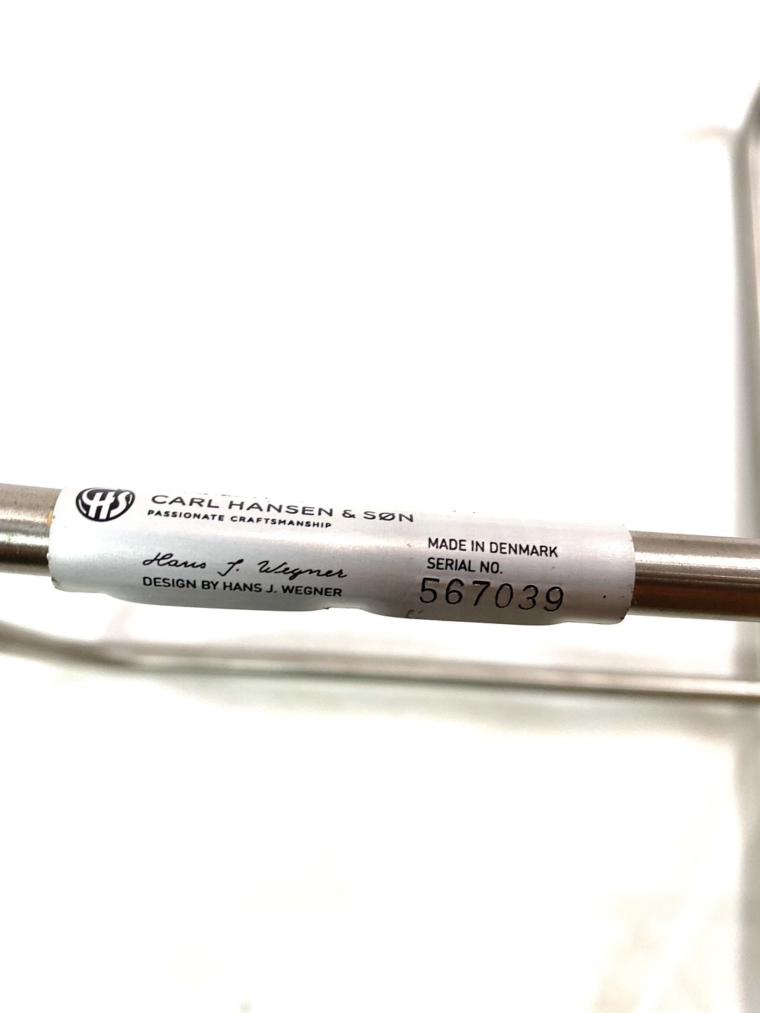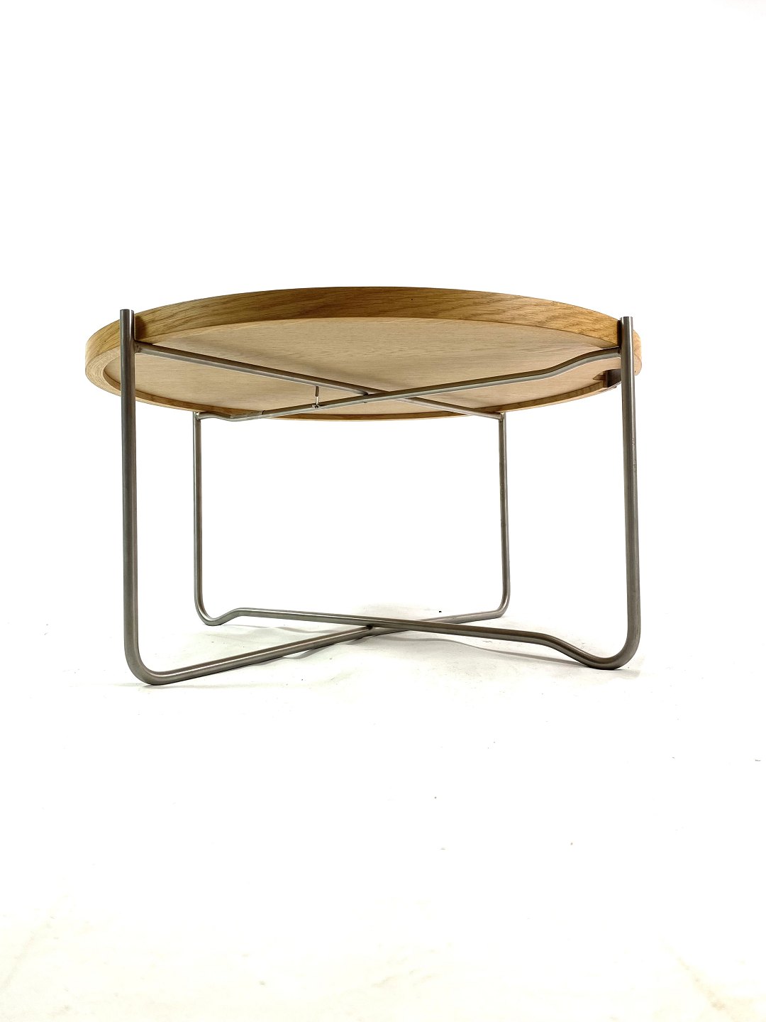 SoldTray table from Carl Hansen & Søn, designed by Hans J. Wegner. The tray table consists of 2 parts. A collapsible legs and a tray. The legs is made of stainless steel and the table top is made of walnut veneer. The wood is oiled oak.