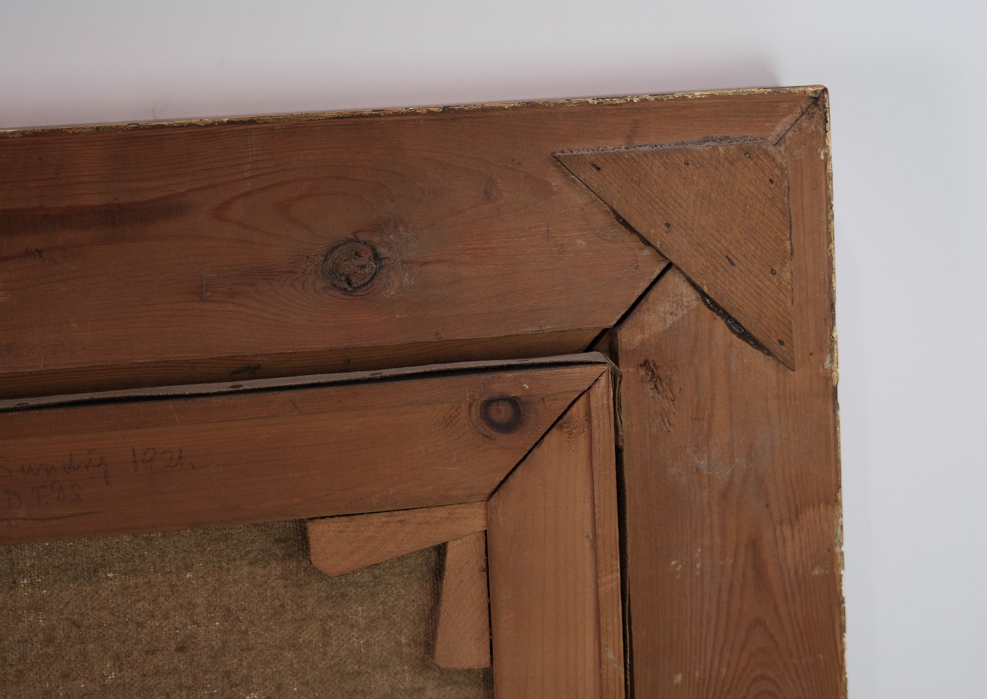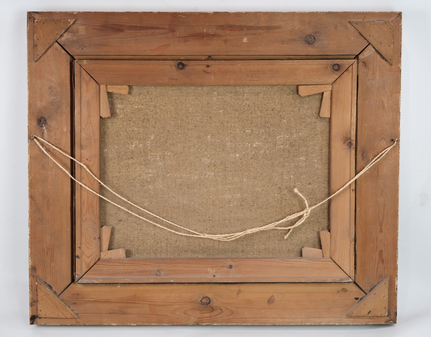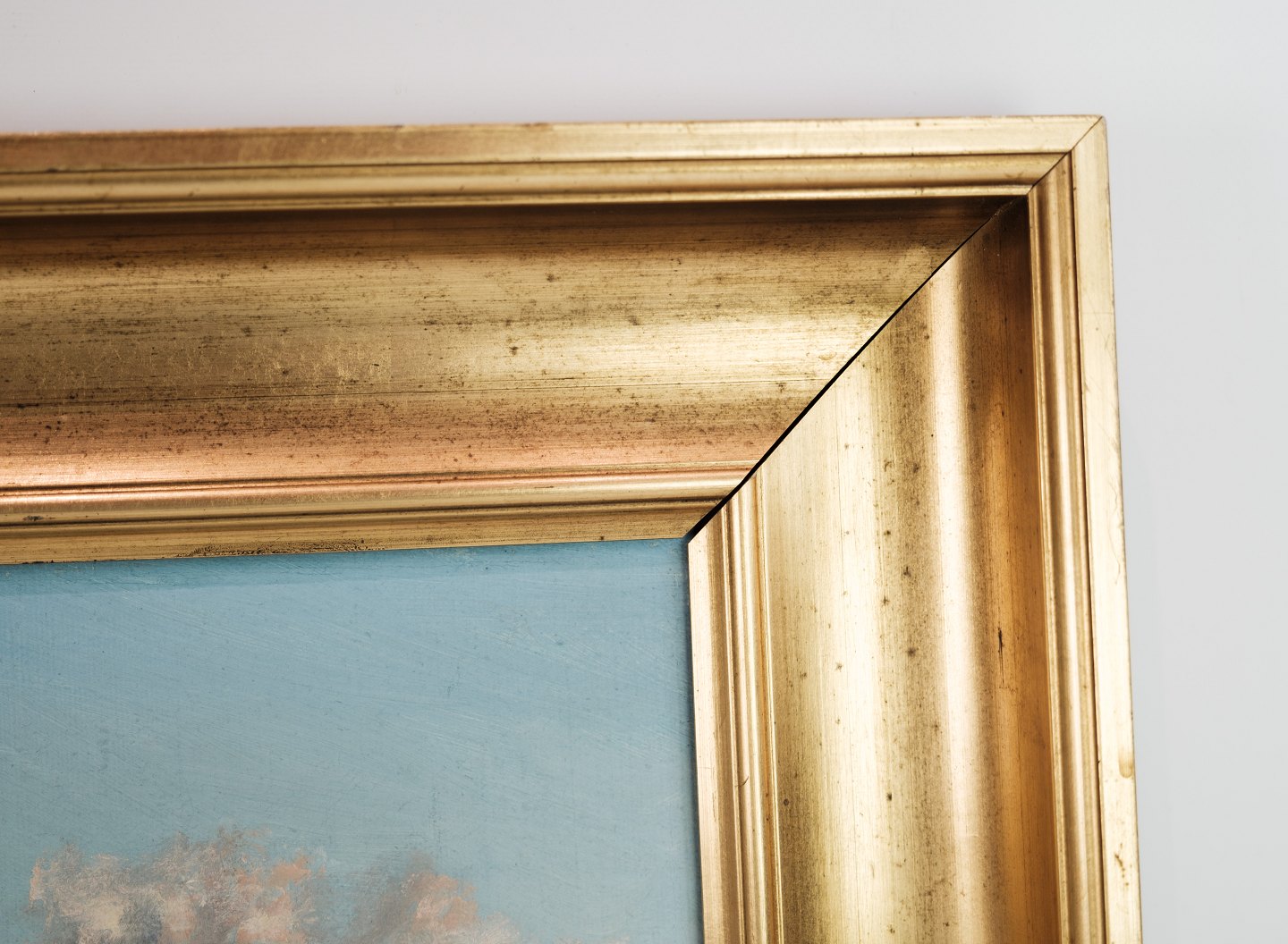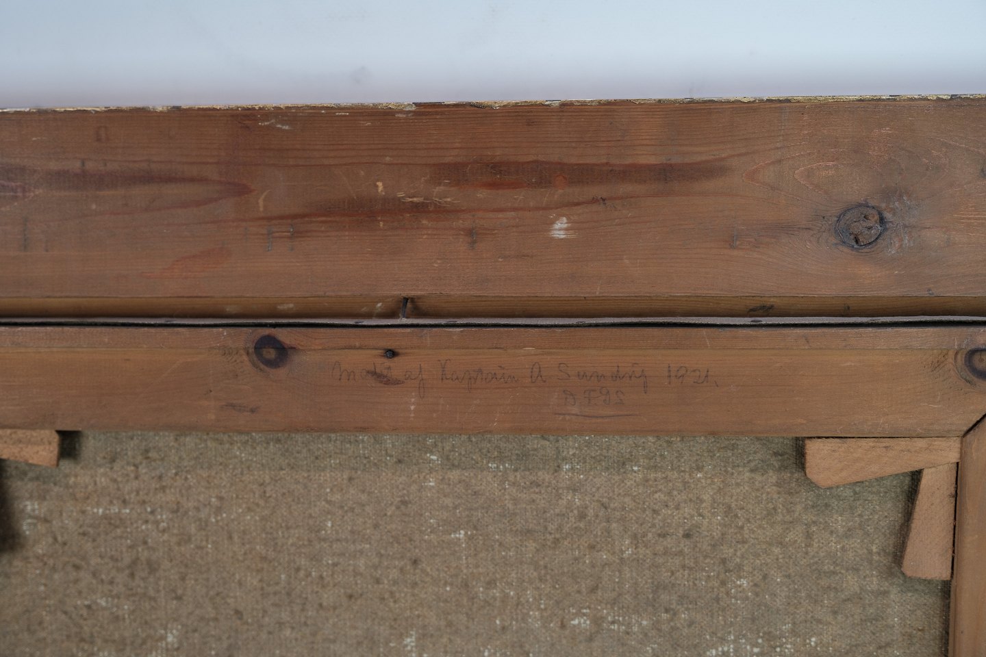 SoldMarine painting of sea, ship and clouds with gold frame signed A.S 21 from the 1920s. Painted by Captain A Sandvig, which is writtin on the back of the frame.