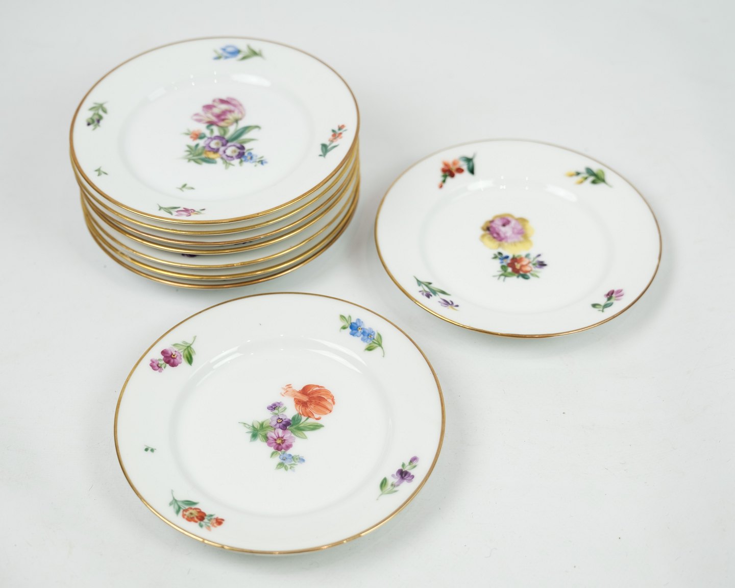 Royal Copenhagen kongelig kage / side tallerken dekoreret med håndmalet blomster nr. 9055. Fremstår hel og uden skader.