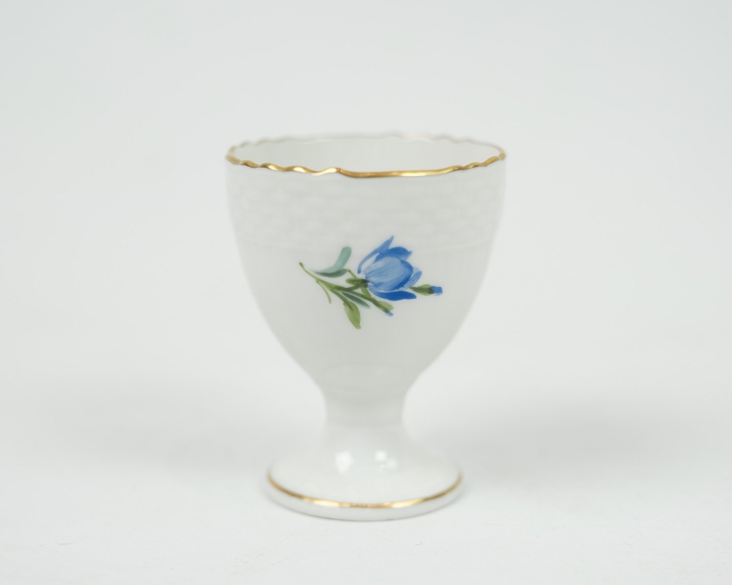 Royal Copenhagen æggebæger i stellet saksisk blomst nr. 1568. Står meget fint i guldet. 1 sortering