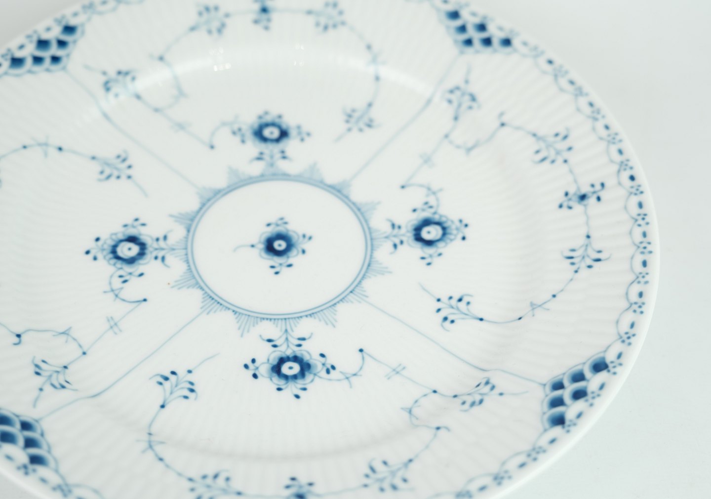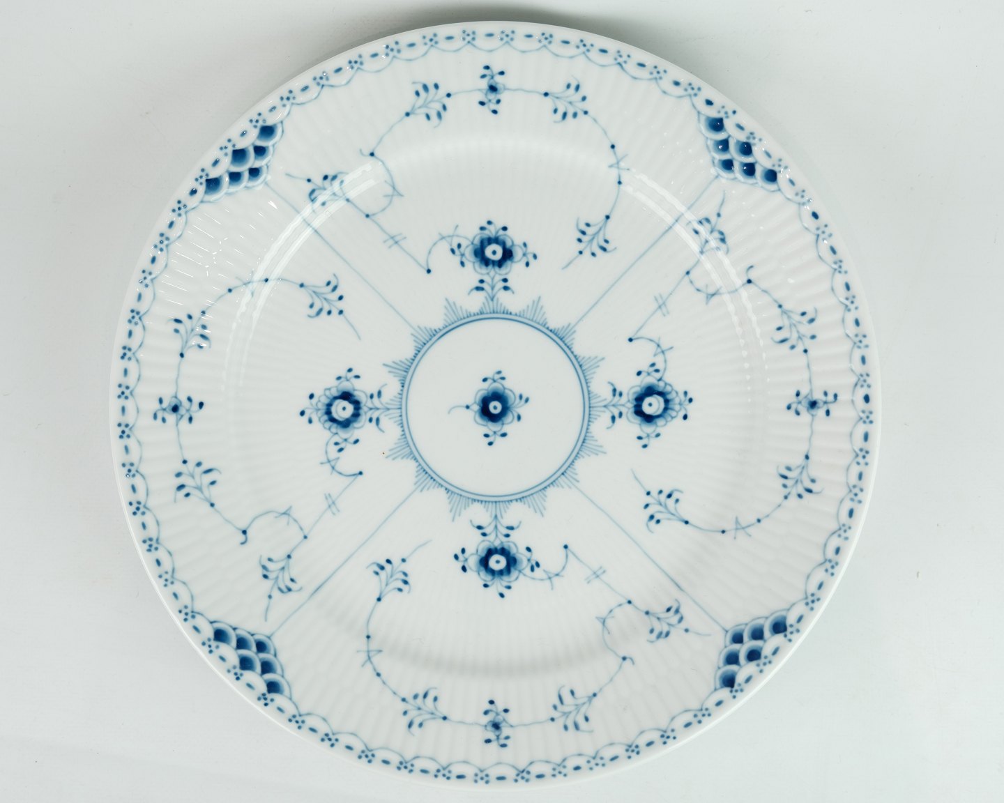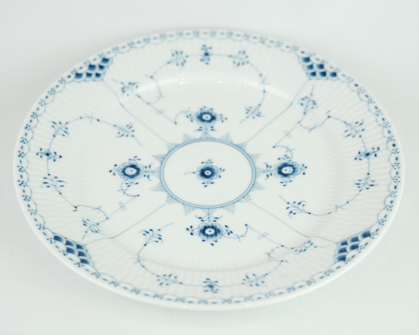 SolgtRoyal Copenhagen musselmalet halvblonde middagstallerken nr. 627. Står i perfekt stand.