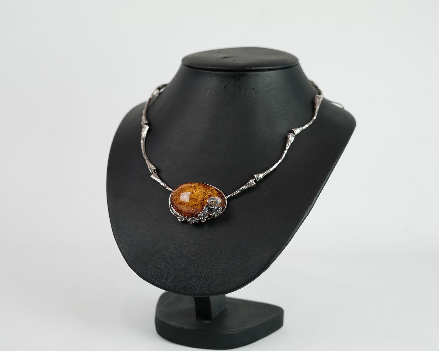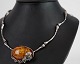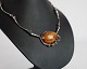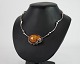 Hals collie i sølv med stor slebet rav klump prydet med sølv blomster. Står i meget fin brugt stand.