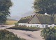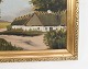 Oil painter of farmhouse in forest, painted on a wooden plate from around 1930s. In very good used condition.