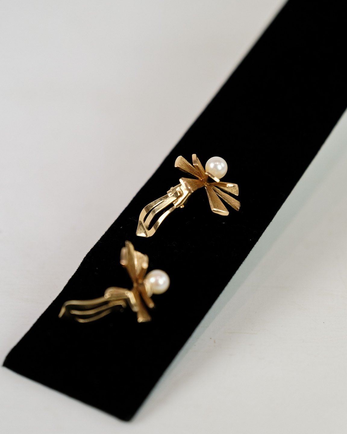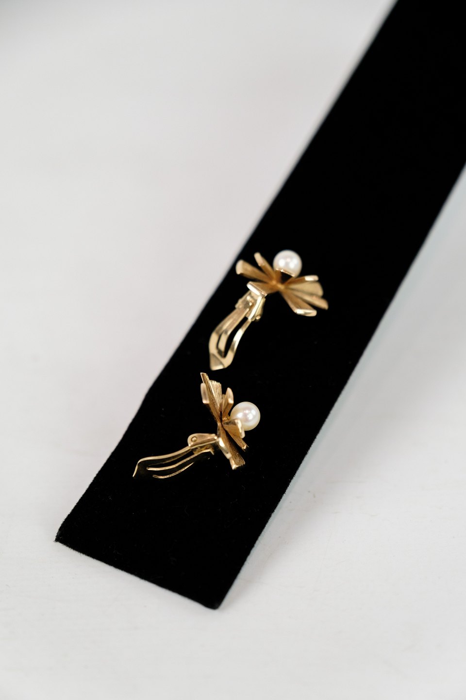Vintage Ole Lynggaard ear clips of 14 carat gold with culture pearl of very high quality. Both ear clips are stamped Ole L. 585.