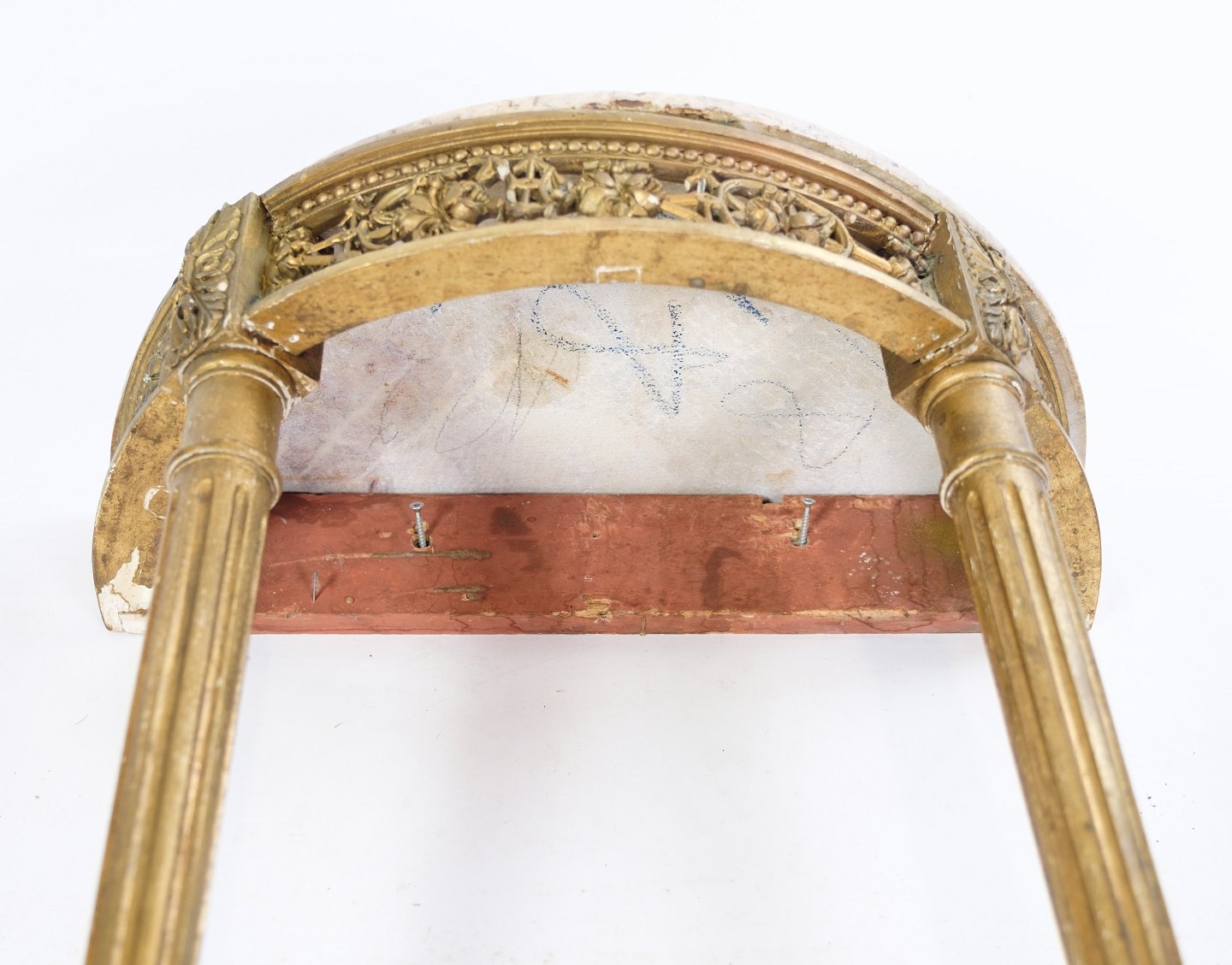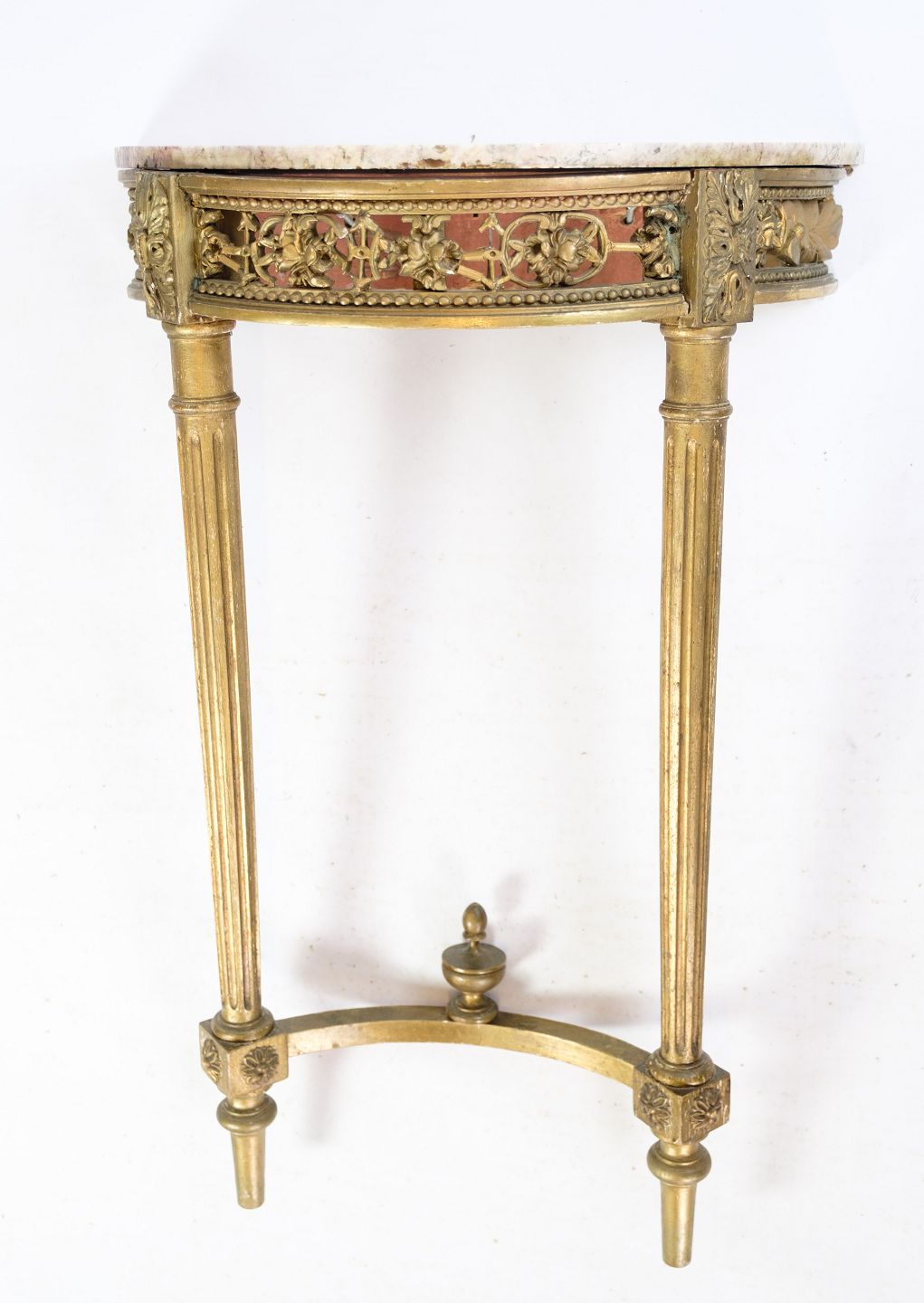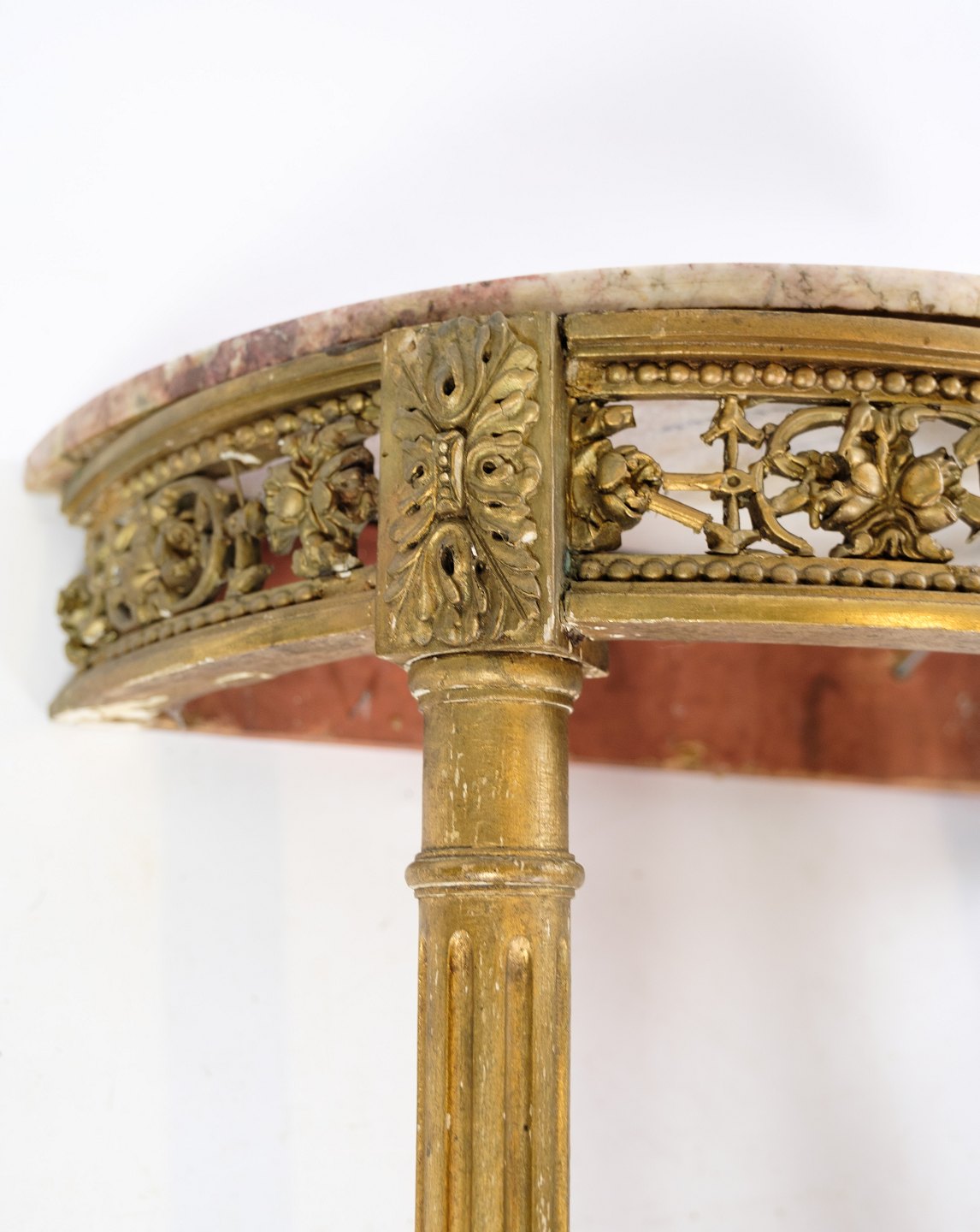 Forgyldt konsolbord fra Danmark med hvid marmor plade fra perioden Louis Seize fra omkring år 1790'erne.