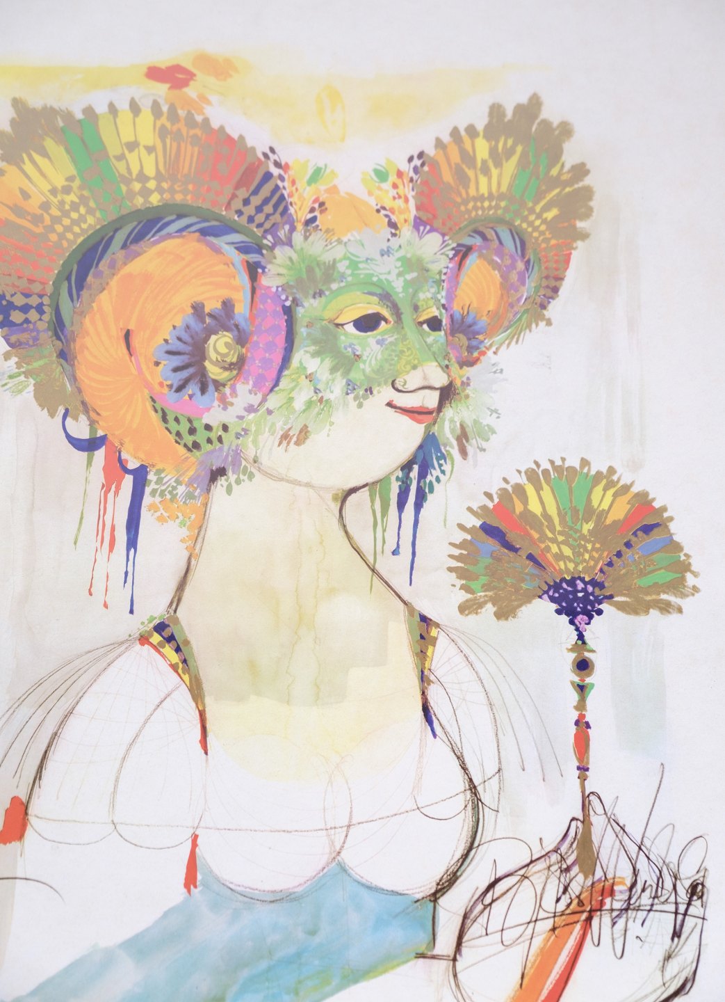 Serigraphic poster by Bjørn Wiinblad with a motif of a woman from around the 1970s.