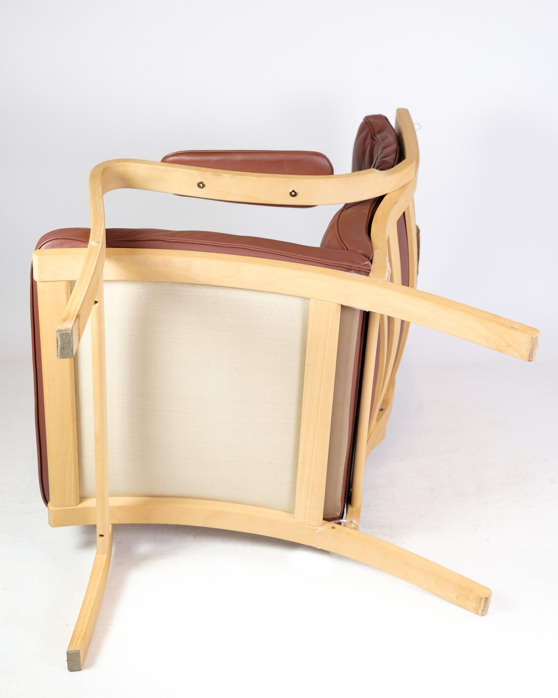 The armchair and stool, model MH 101 by Mogens Hansen from around the 1960s, is a masterpiece of Danish design that combines style, comfort and craftsmanship in a unique way. The chair has a frame of beech wood, which gives both strength and elegance to the design.