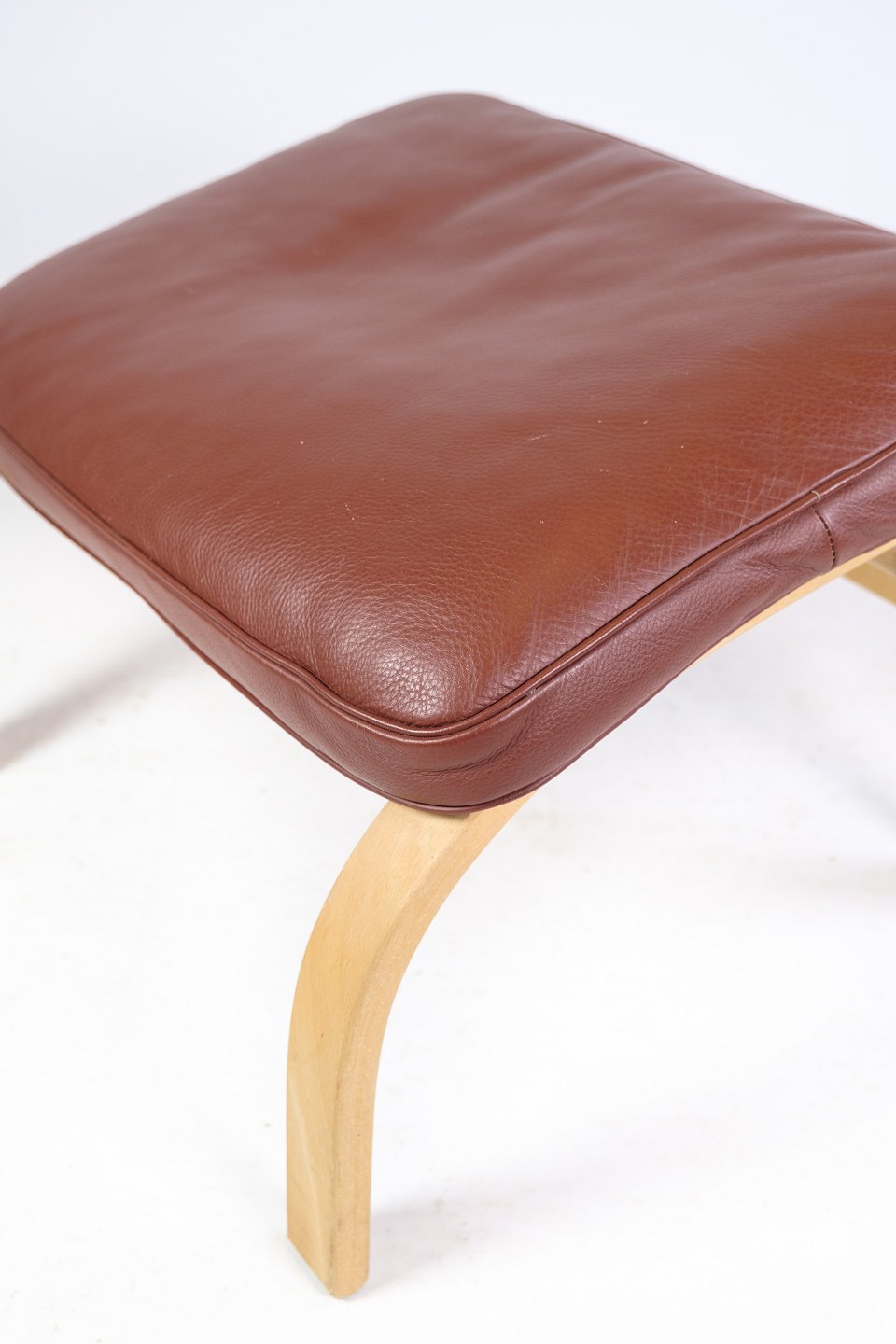Stool - Model MH 101 - Light Oak Legs - Leather Cushion in Cognac - Mogens Hansen - 1960