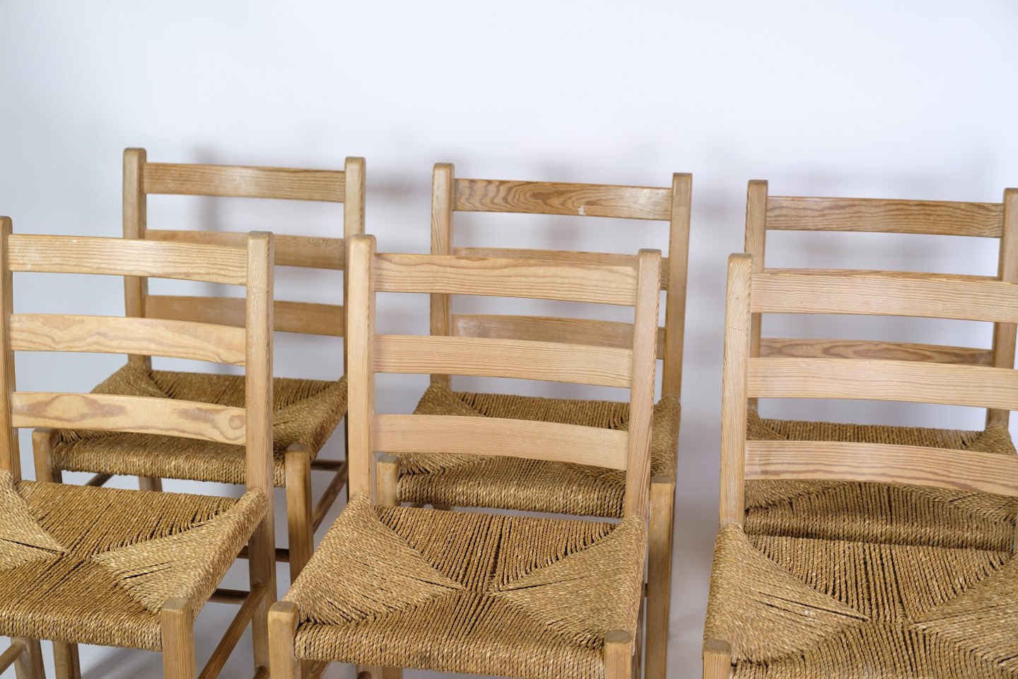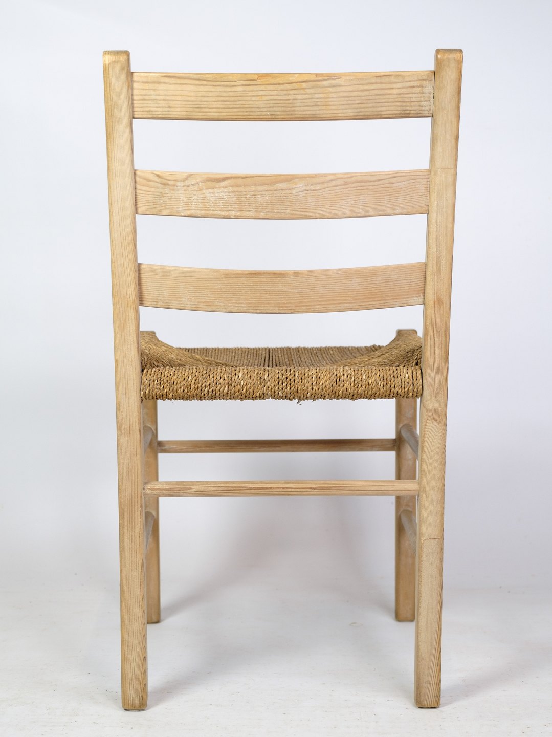 A set of 6 chairs in pine wood with wicker seat from around the 1970s