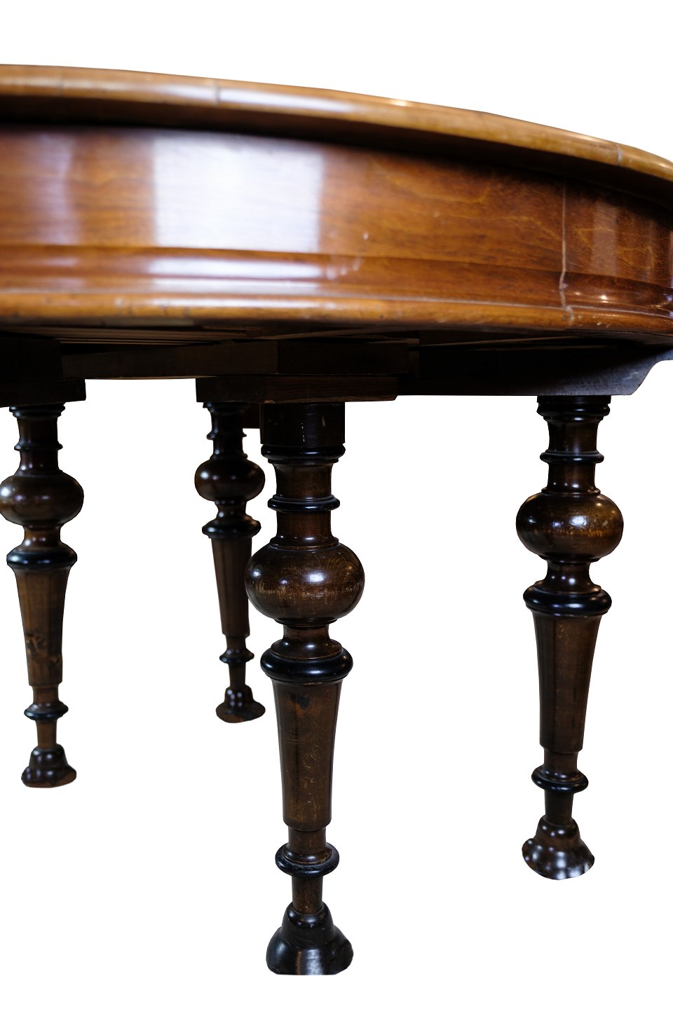 Spisebord i valnød fra år 1880'erne. Bordet står i meget fin brugt stand.