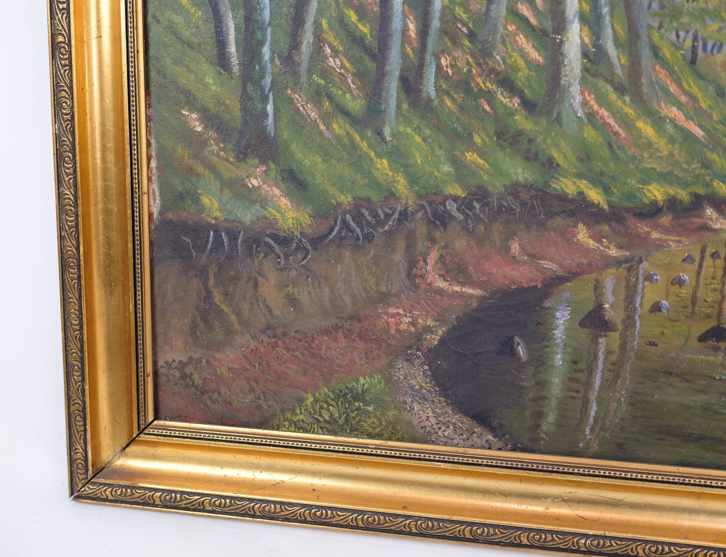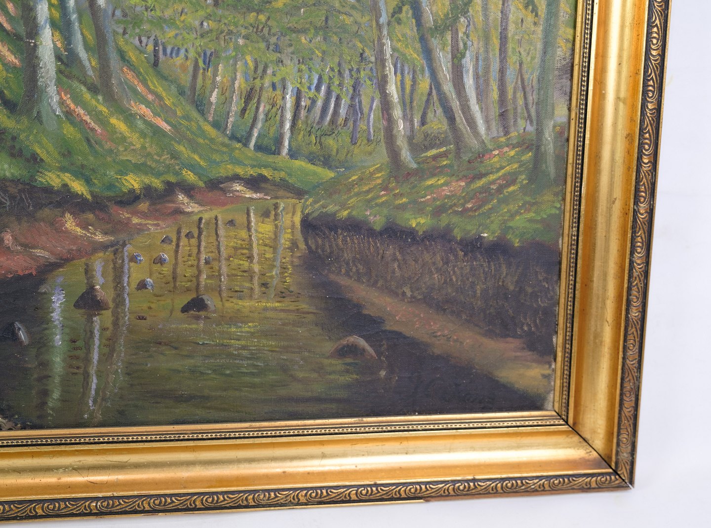 Oil painting on canvas with forest motif in Denmark from around the 1930s.